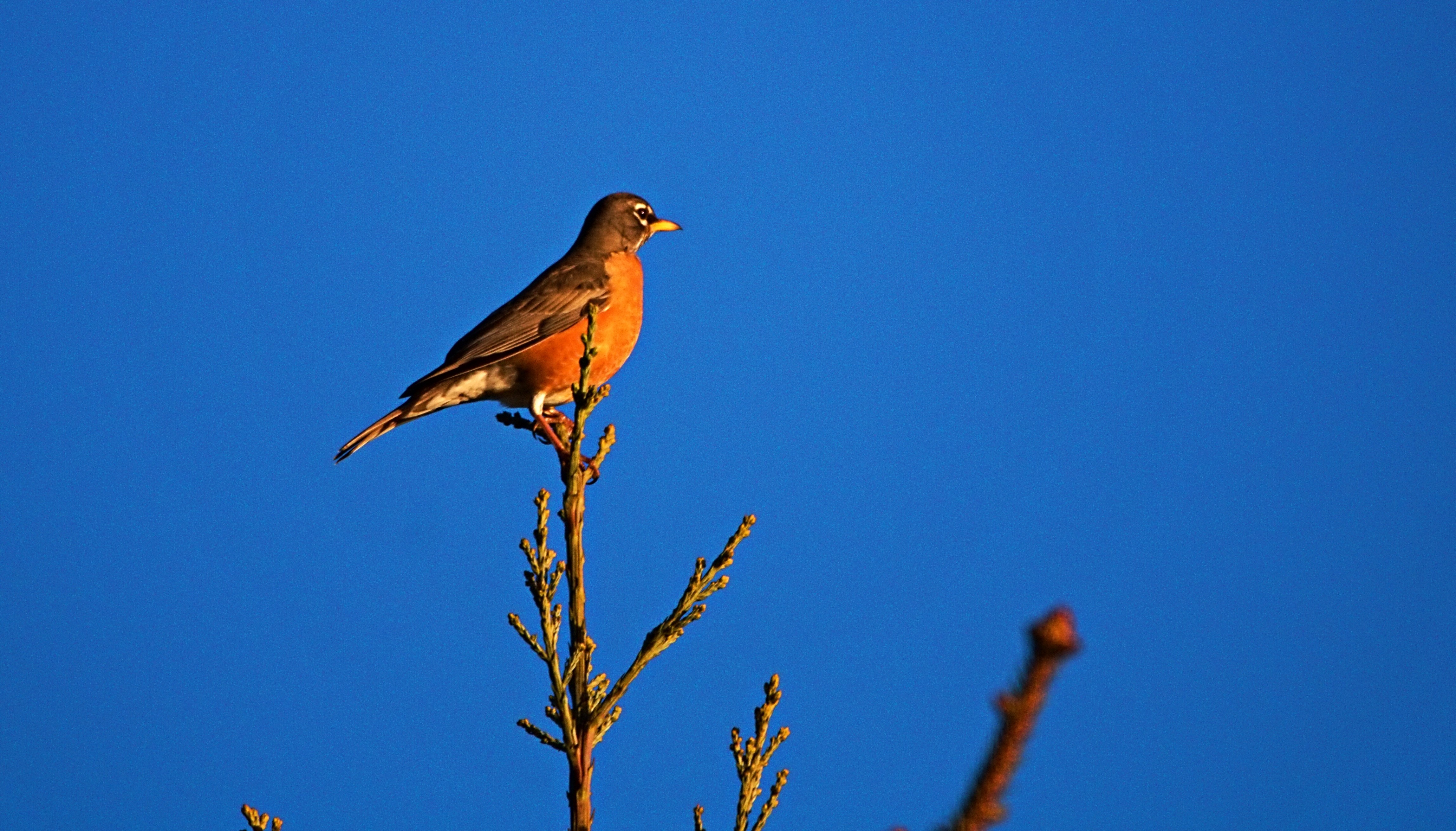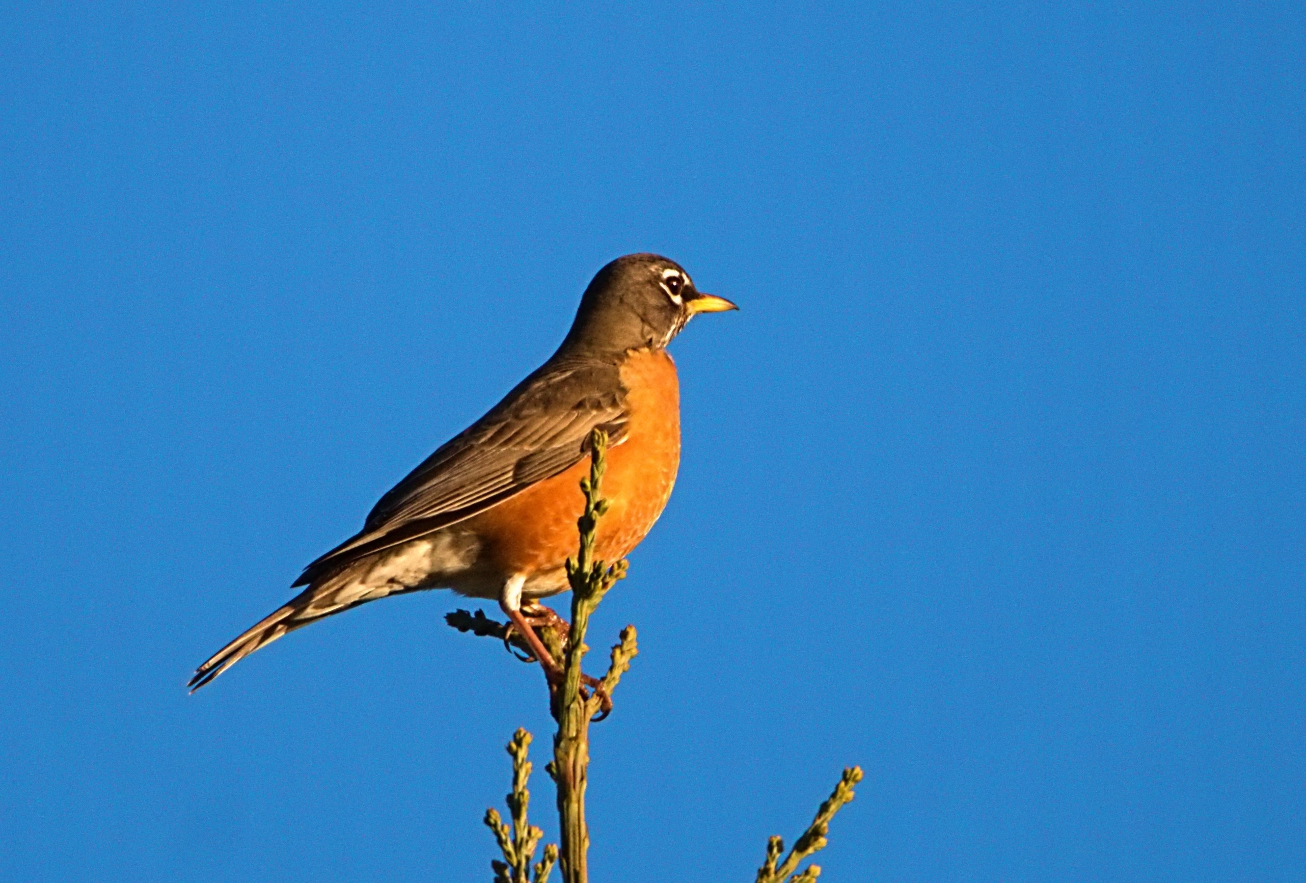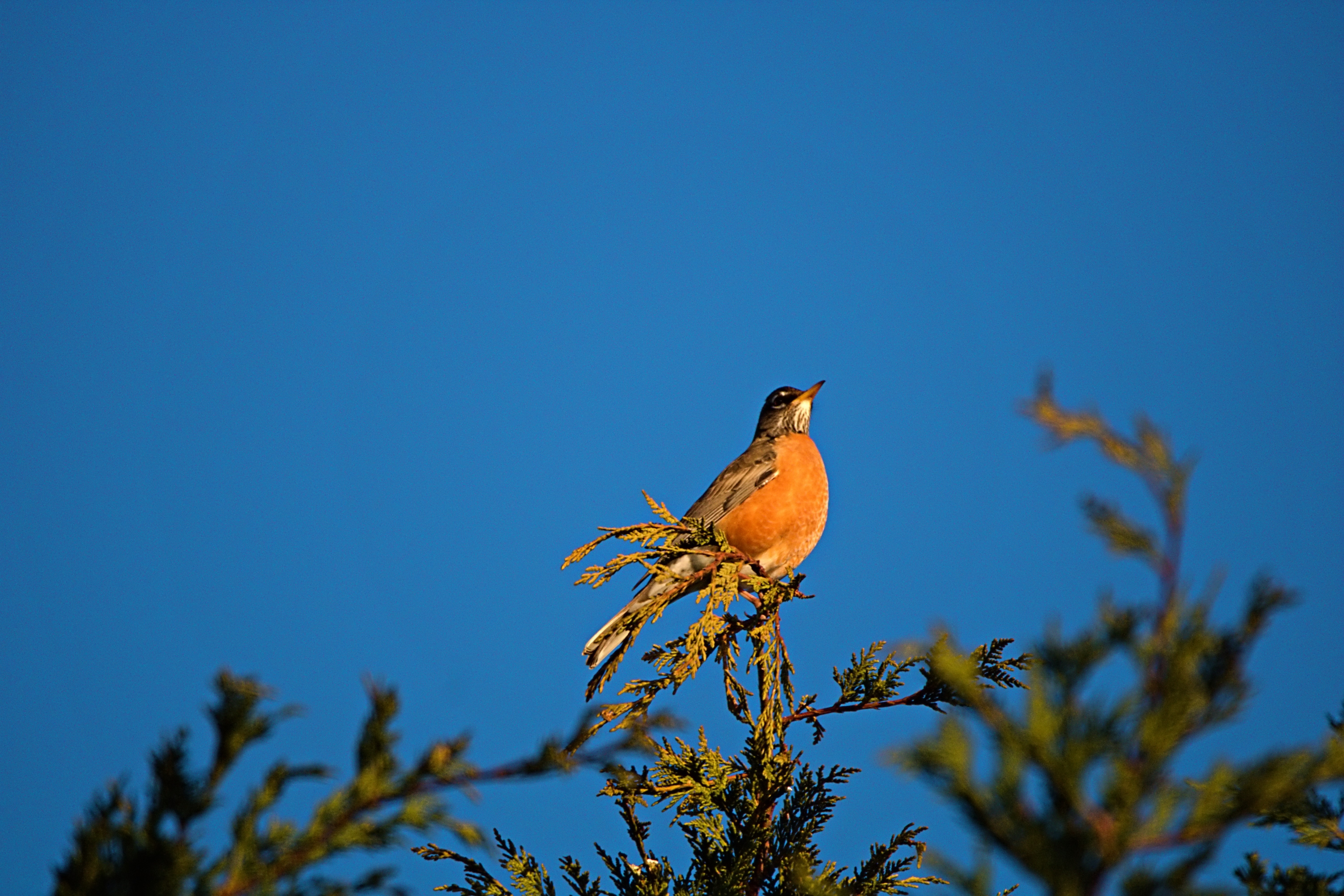 As I was tracking the geese I spotted a Robin watching them fly by.
