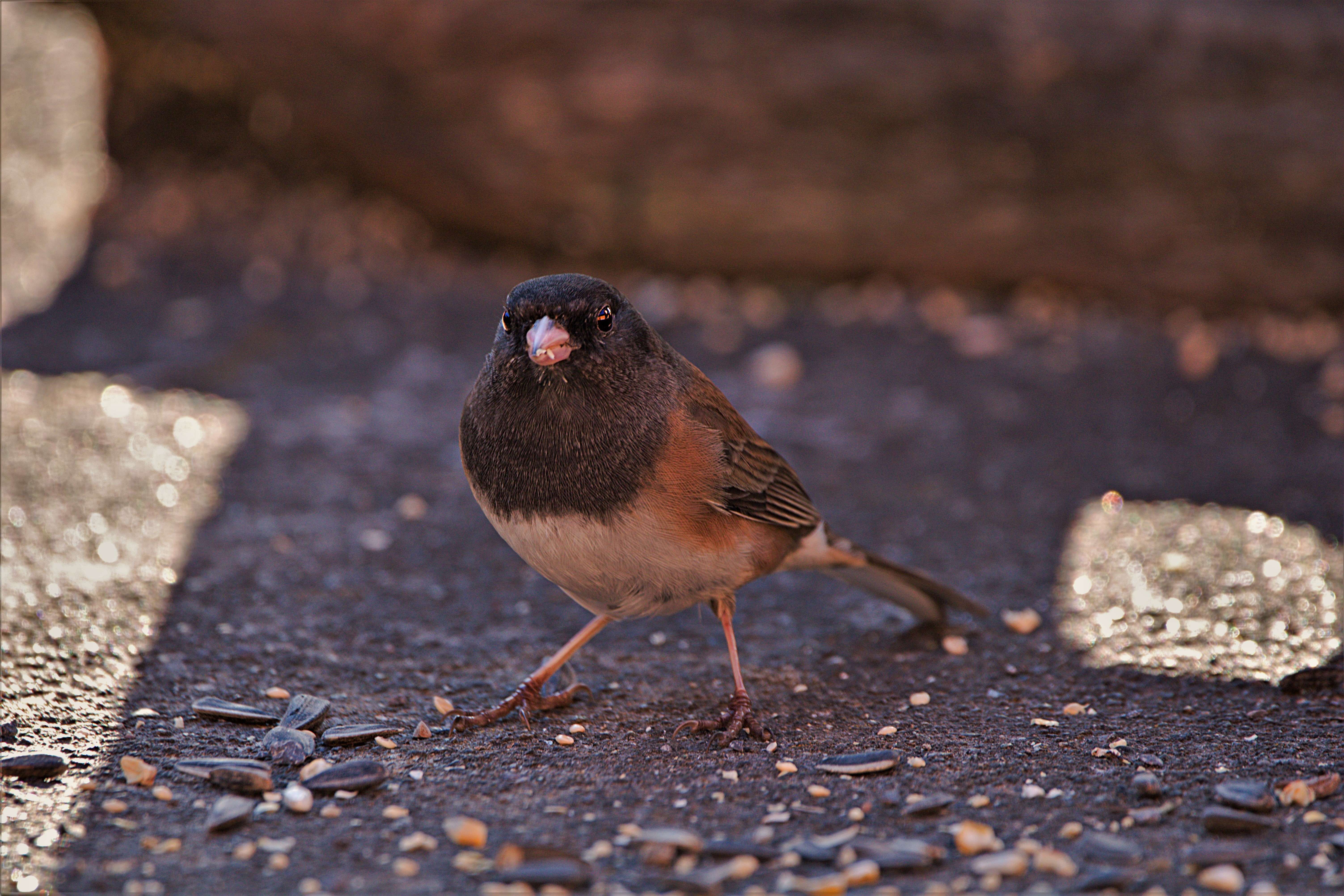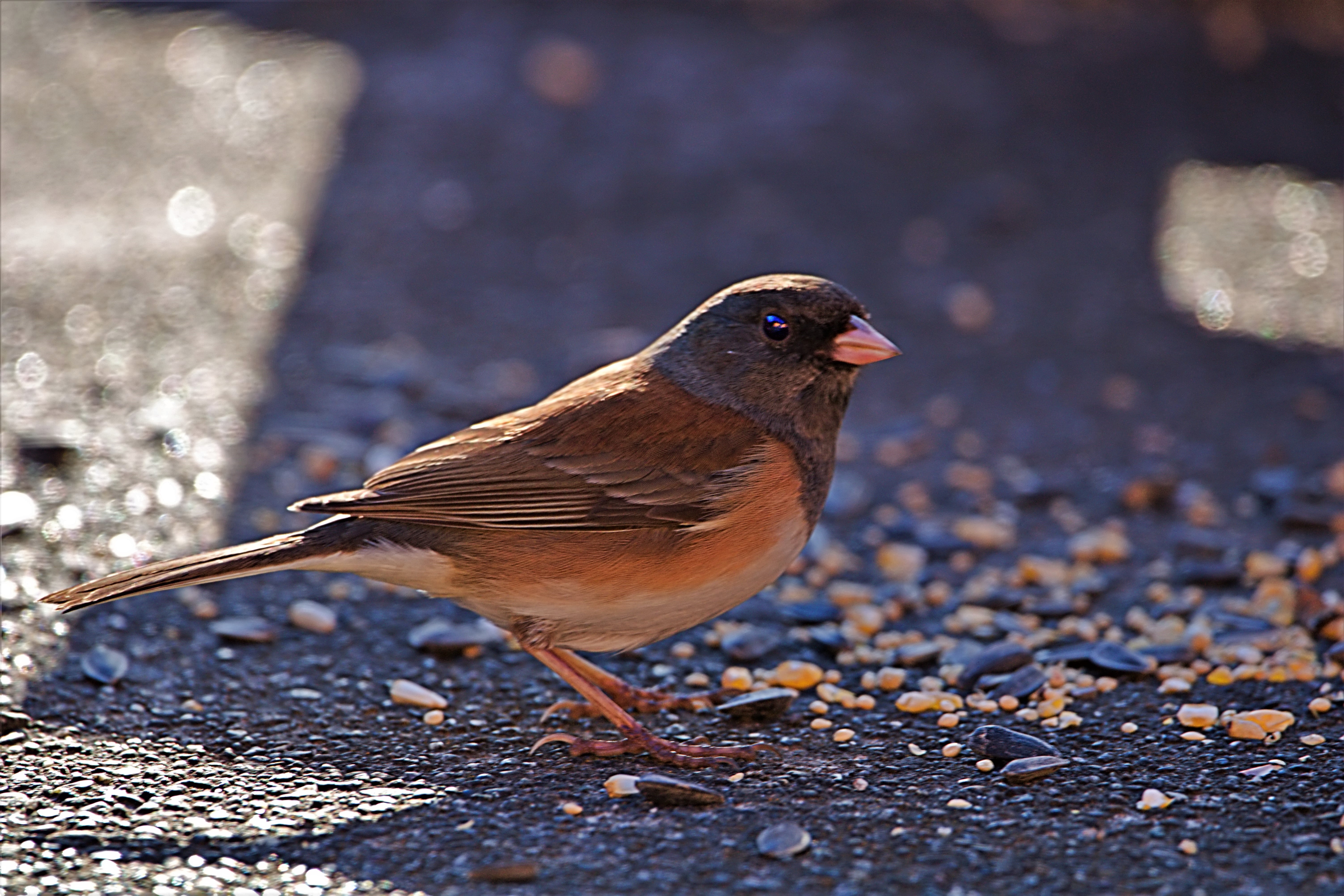 These little Juncos are right at the minimum focus distance, I actually had to move back about three feet or so because they were coming in too close O.o