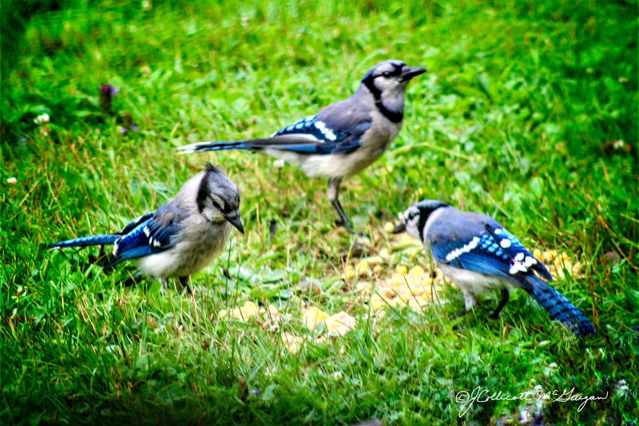 There are a lot of different birds who enjoy fruit! Love your Blue Jay's. That mama Jay seems quite proud of her youngsters!