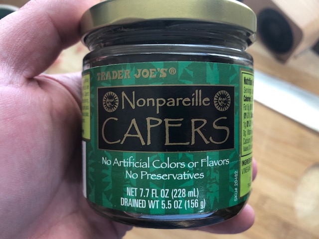 I didn't have any pickles or pickle relish, so I used the next closest thing, capers! They worked really well actually.