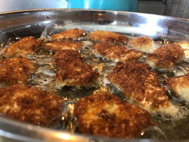 Once the oil in the pan was nice and hot, it was time to start fryin'!
