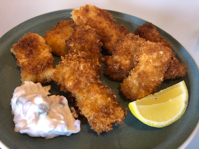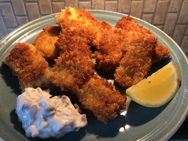 I'd eat it any way, too, @farm-mom. But the fried style with that tartar sauce was seriously out of this world. Yes, that is my Mr. Man, Hayek. I had like 30 pics of him slamming those lil fish nuggets, those were my favorite 2.