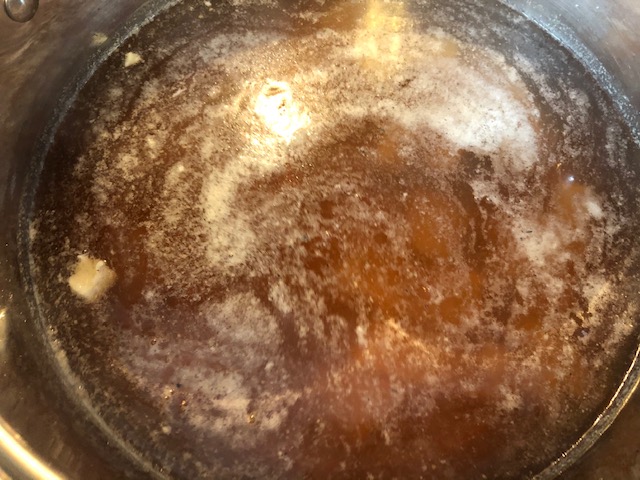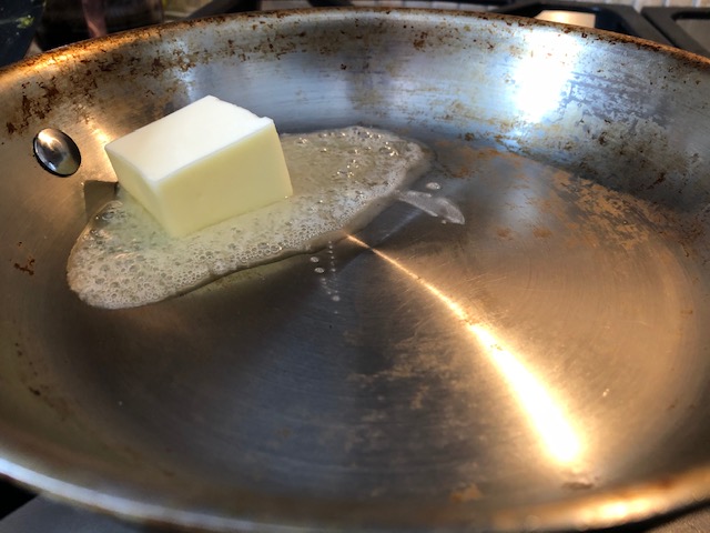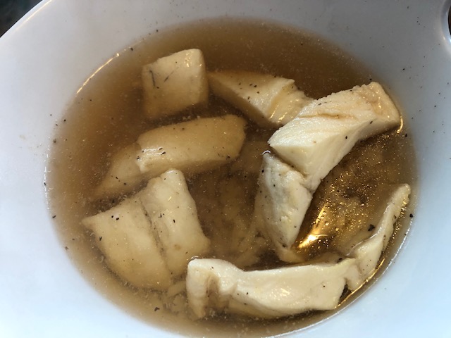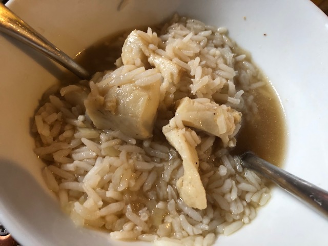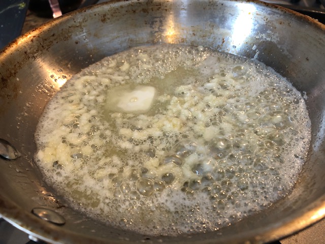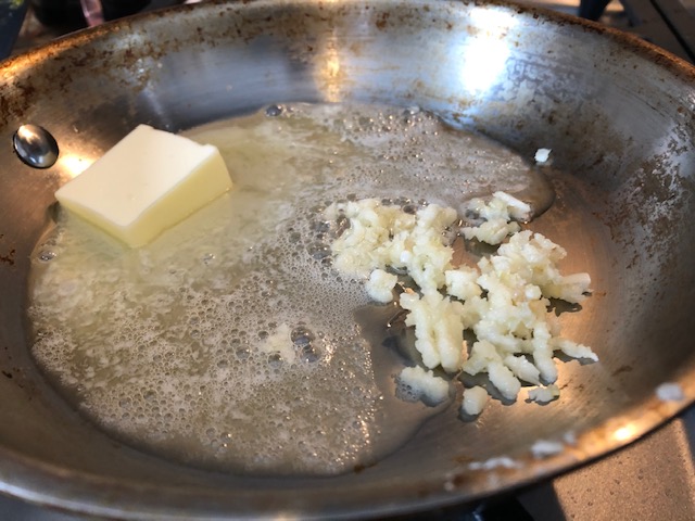 Once my broth was hot and the taste was to my liking, I tossed in the fish and let them poach for a few minutes. While that was happening, I started on the garlic butter and the rice.