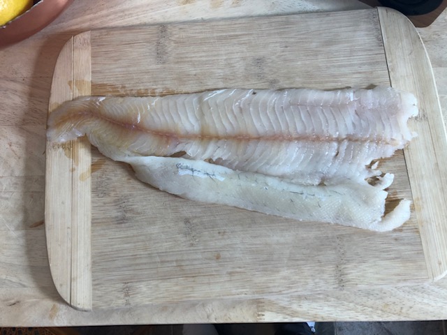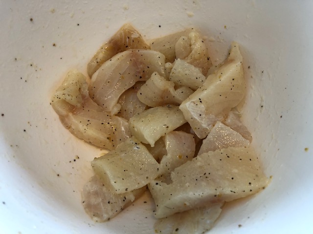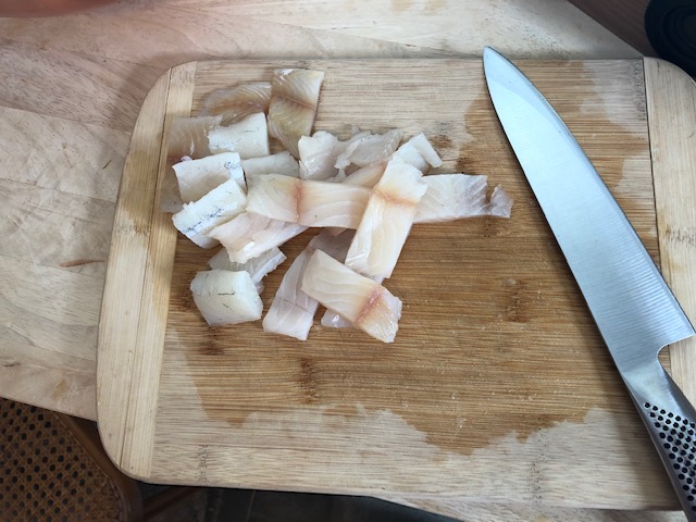 First I had to chop up the fish into manageable bite sized pieces.