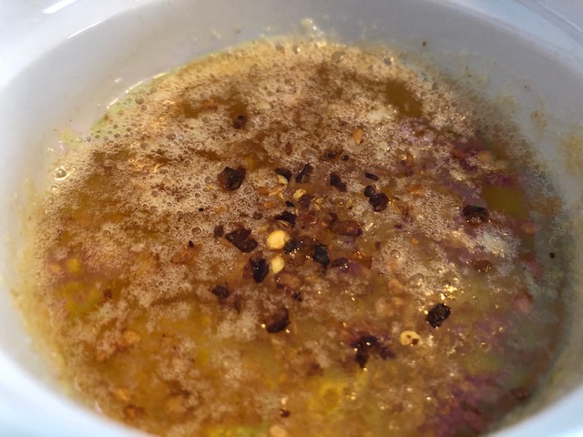 Pour it into a small dipping bowl and top it off with some chili flakes, yeah, it tasted as good as it looks.