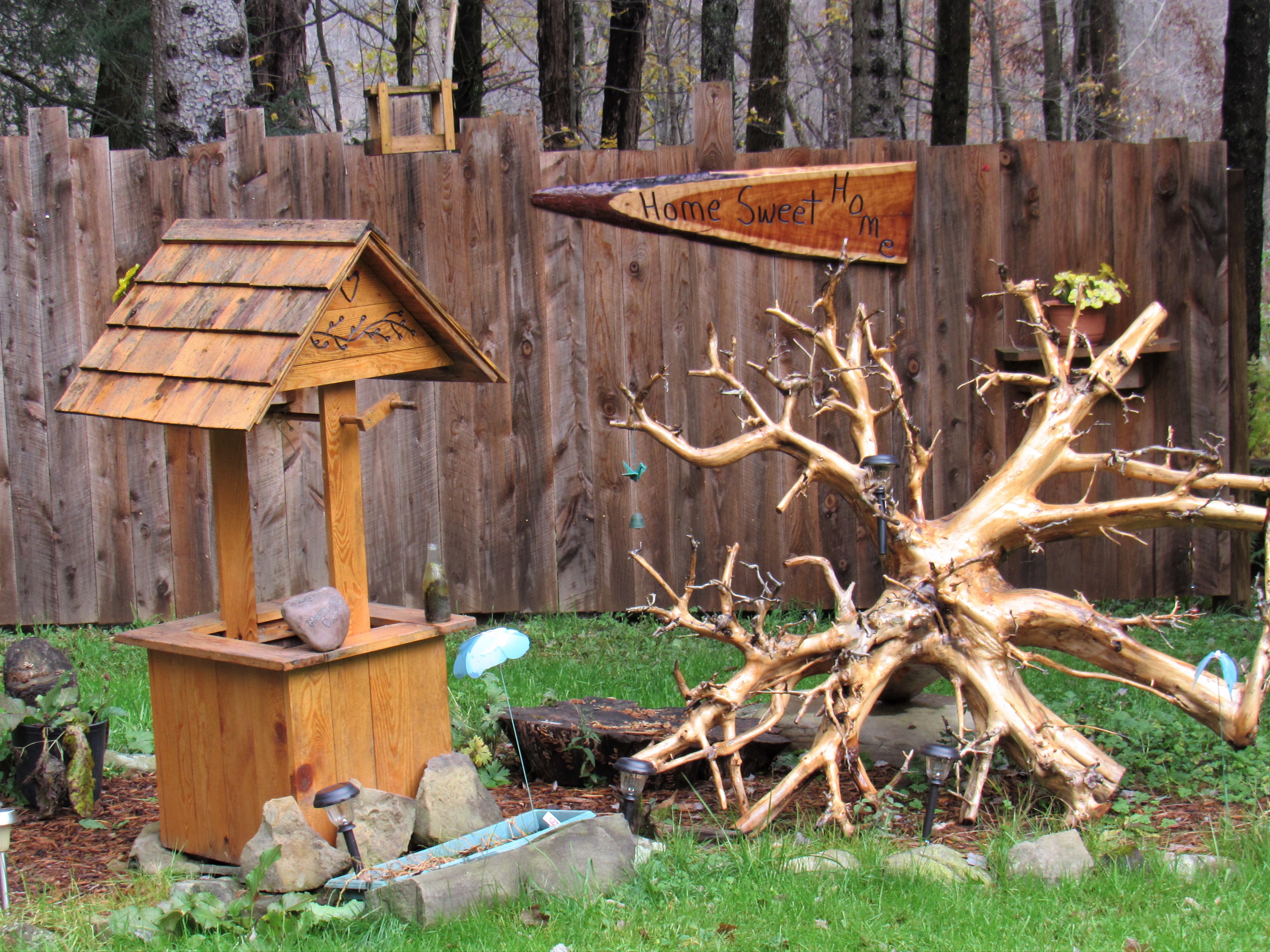Good morning, yes I do put all different posts out there. A lot of homesteading blogs and different projects that I have made from wood. Here is a garden ornament that I made from a stump and root-ball from a tree that had blown down last year.