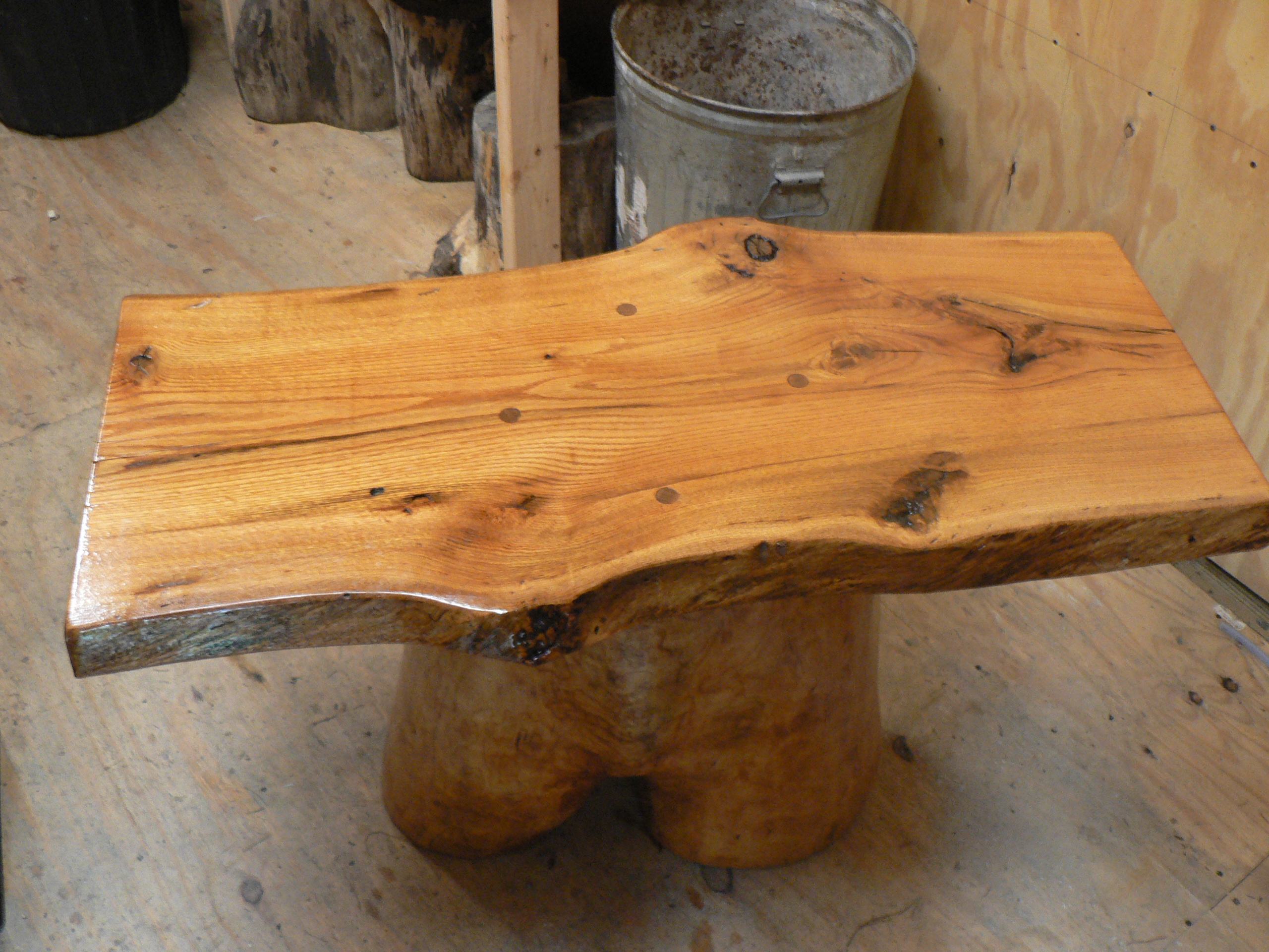 He is truly an artist. Being a woodworker myself, I have a real appreciation for his work. Here is a live edge table I recently finished. The top is from Black Oak and the base is a piece of Black Cherry crouch wood.
