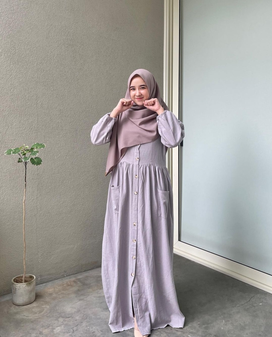 Aksara came with limp hair, the smell of her perfume still remaining and her suit was neat with a white shirt and trousers. Even though it's a bit wet, it still looks charming.