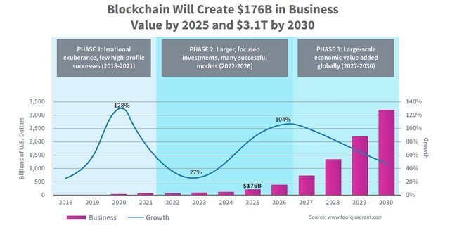 Технология блокчейн является частью революции Индустрии 4.0, которая вводит автоматизацию в каждый сектор, и одной из инноваций, которая очень быстро растет с различными новыми инновациями, внедряемыми в различных секторах, особенно в сфере потребностей в сфере недвижимости и стиля жизни, время от времени технология блокчейн продолжает распространяться. изменение различных основных аспектов жизни в том виде, в каком мы ее знаем сегодня, что вводит новую экосистему, которая является более прозрачной, безопасной и, конечно же, эффективной. В последние несколько месяцев различные крупные организации начали внедрять технологию Blockchain в свою экосистему, и, конечно же, это очень хорошая новость, и она, безусловно, продолжит расти. Сам по себе Filipcoin - это очень инновационный проект с новой экономической экосистемой, которая вводит новшества и, с другой стороны, максимизирует потенциал блокчейна, становясь мостом для сектора повседневных нужд через инновационную уникальную экосистему, создавая уникальную новую систему для всех. На приведенной ниже диаграмме показано развитие внедрения блокчейна и размер рынка с течением времени.