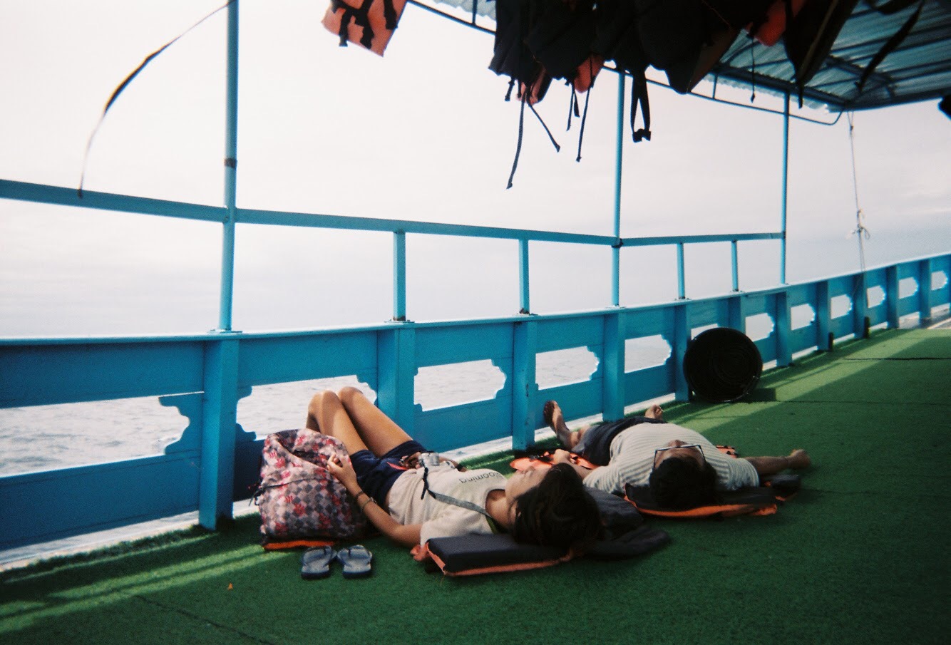 A picture I took before the boat stopped for snorkelling. The trip to the site took over an hour, so this couple decided to sleep over it.