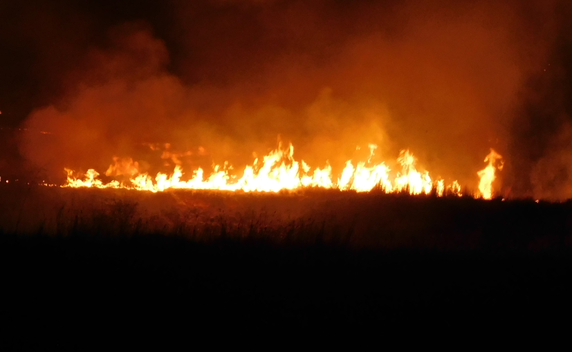 Being the very end of winter the grass is so dry and the air is warmer that the flames leap 6 to 7 meters into the air.