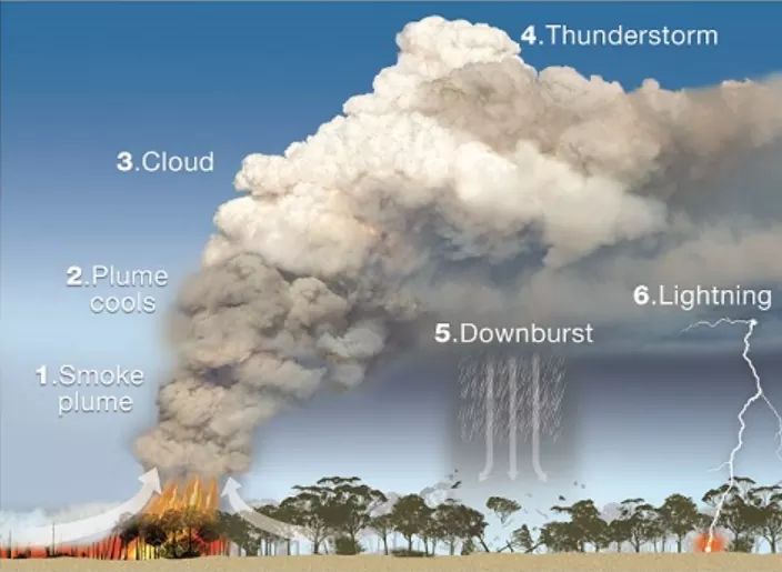 They’re a thunderstorm that forms in the smoke plume of a fire (or nuclear bomb blast, or volcanic ash cloud). In Australia they most commonly form in large and intense bushfire smoke plumes. (The official name for clouds that form this way is 'flammagenitus', but they're commonly known as pyrocumulonimbus).