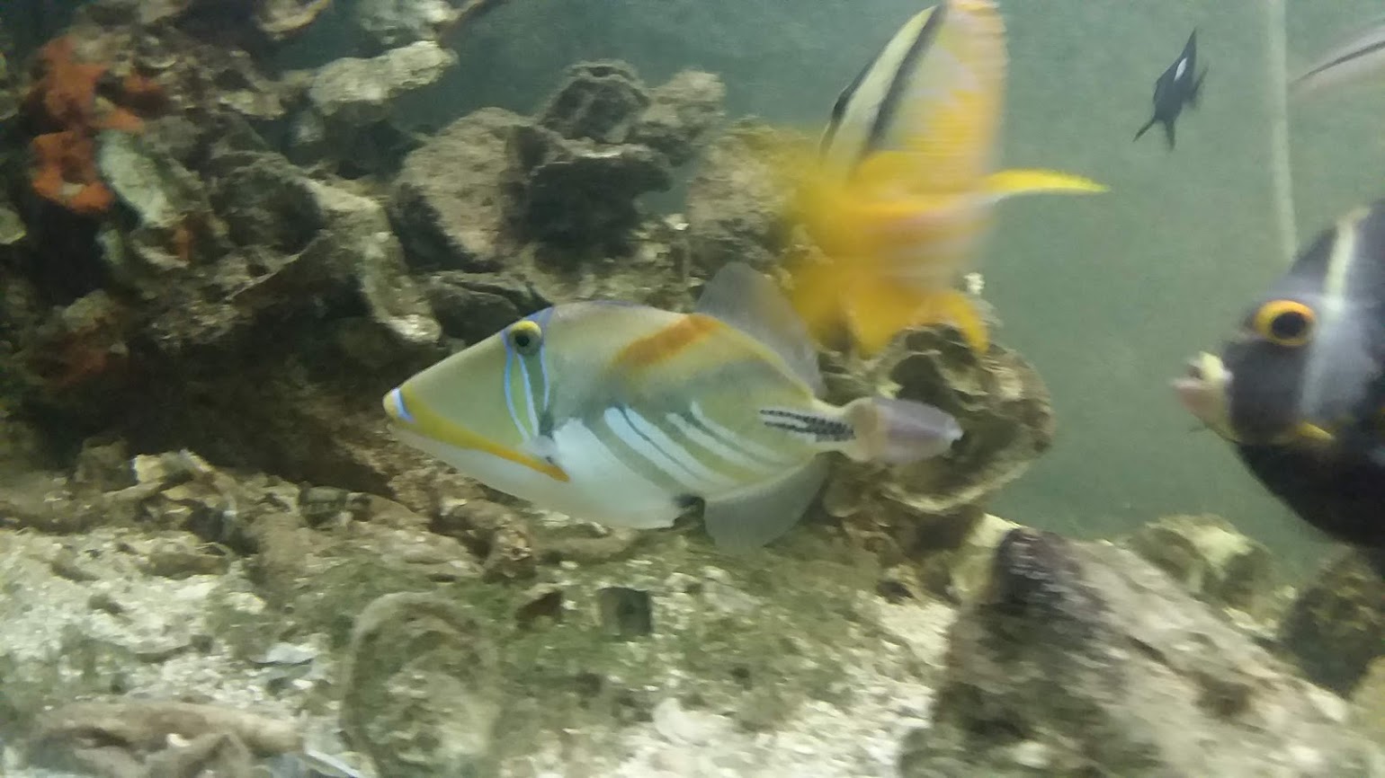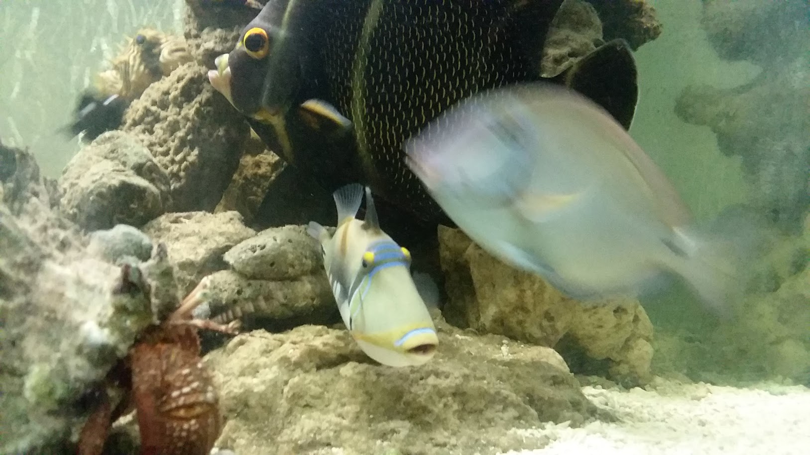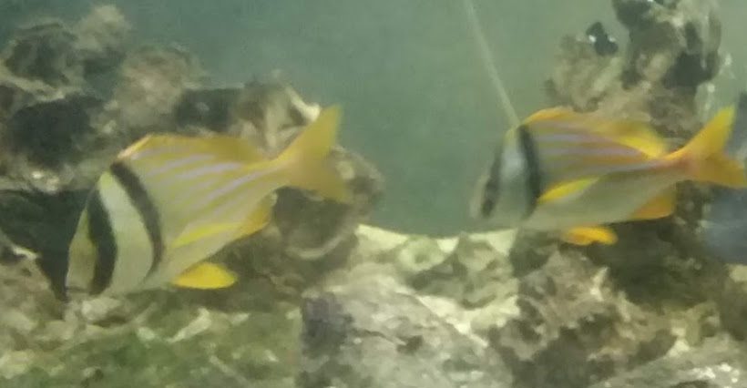 Next, we have a pair of Porkfish! I caught the smaller one and thought it would be a beautiful fish to keep in my tank and since it was small and they are found in tanks across the world it seemed fitting. While contemplating the fact that they do better in pairs or groups the same person who caught the French Angel caught another Porkfish. He asked me if I wanted it and I accepted and added it to the bucket. They both love the attention they get from people who walk by them and they are super friendly! I hope to find 2 more as they will do better in a school although if I find anymore they need to be smaller, or in a bigger tank.... shhhh don't tell my wife!