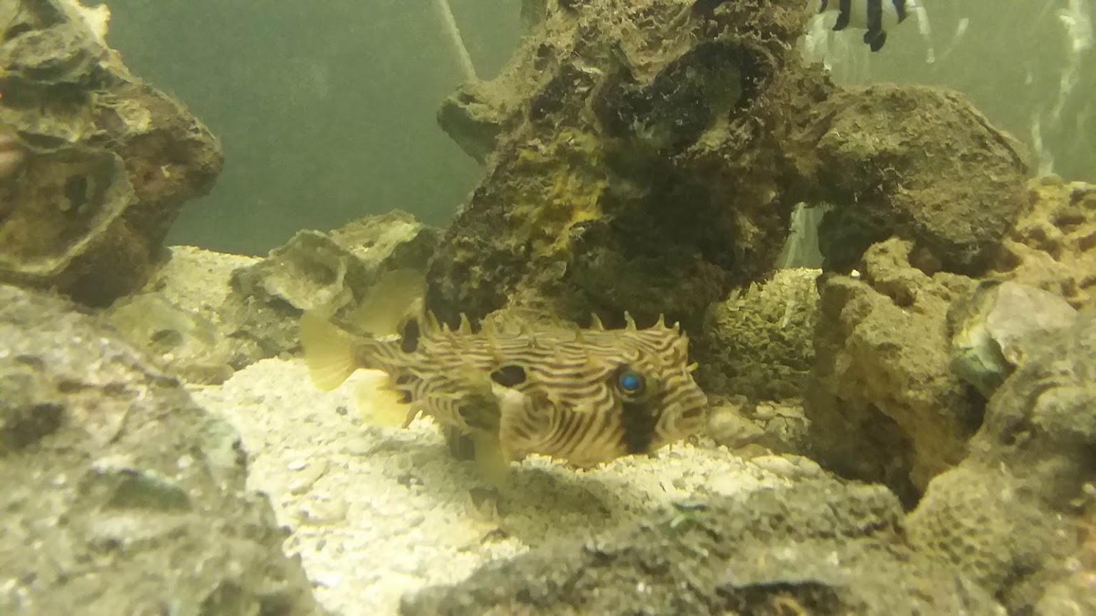 Lastly, I caught this Stripped Burrfish, which is a species of puffer fish. He had unique blue eyes and I couldn't put him back although most of the time you wouldn't want to have one of these in your tank I figured I would try it.