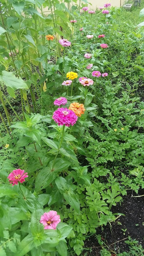 I planted a garden and since all the rain has been crazy the flowers all started to pop open! This is the row of flowers that I planted to help draw in butterflies! We seen several all the time but they are so hard to get a good picture unless they land. I will keep trying!