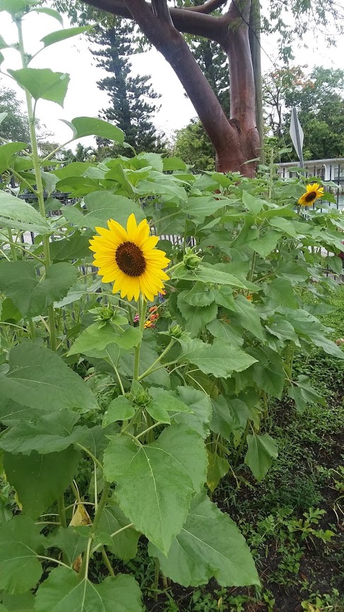 This is one of the rows of sunflowers and the 2 you see open were the first 2 to show any color! Some of them (I planted 5 species) are going to be huge but probably won't open for a week or 2.