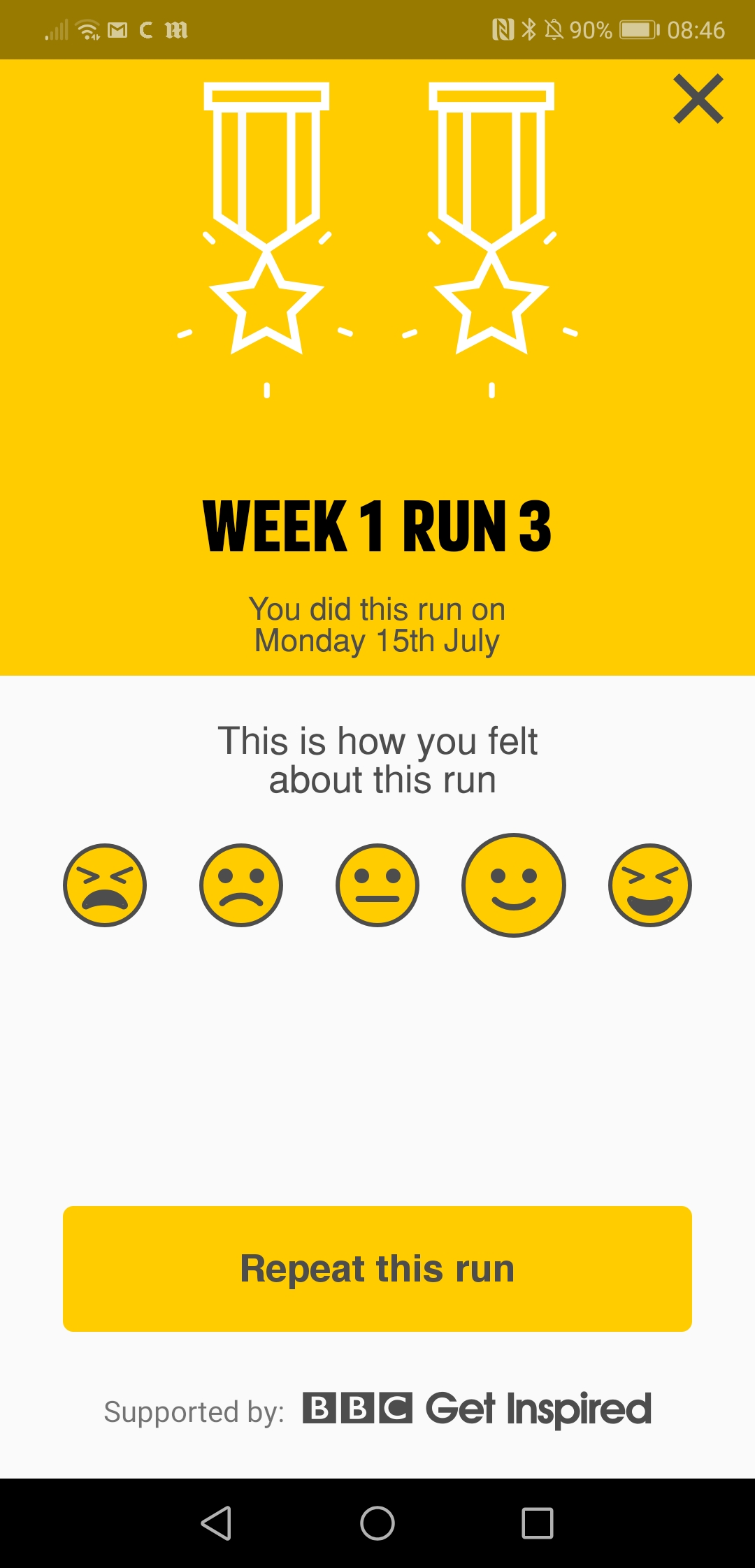 Last night I finished the first week of the couch to 5k app. It was slightly delayed as I was supposed to complete the run over the weekend but due to being busy I never got round to it; so therefore I completed it yesterday.