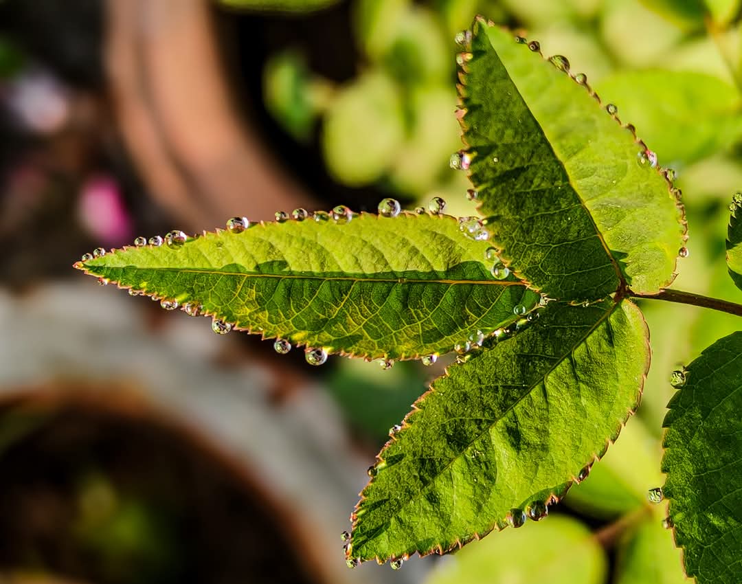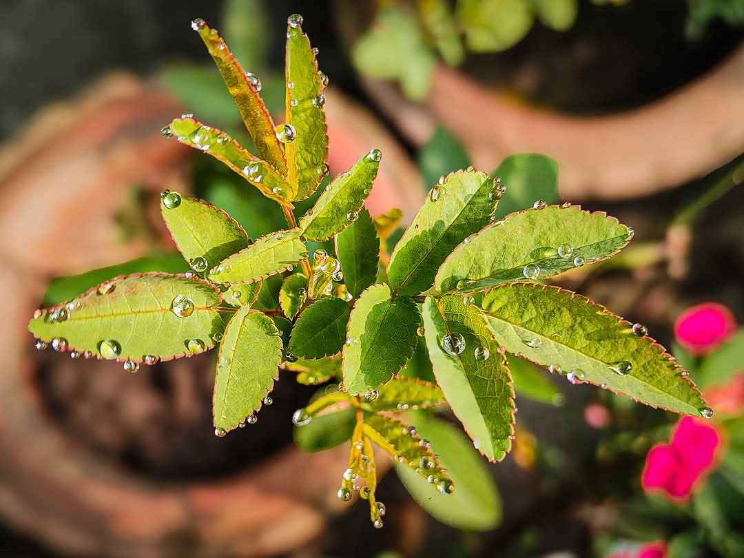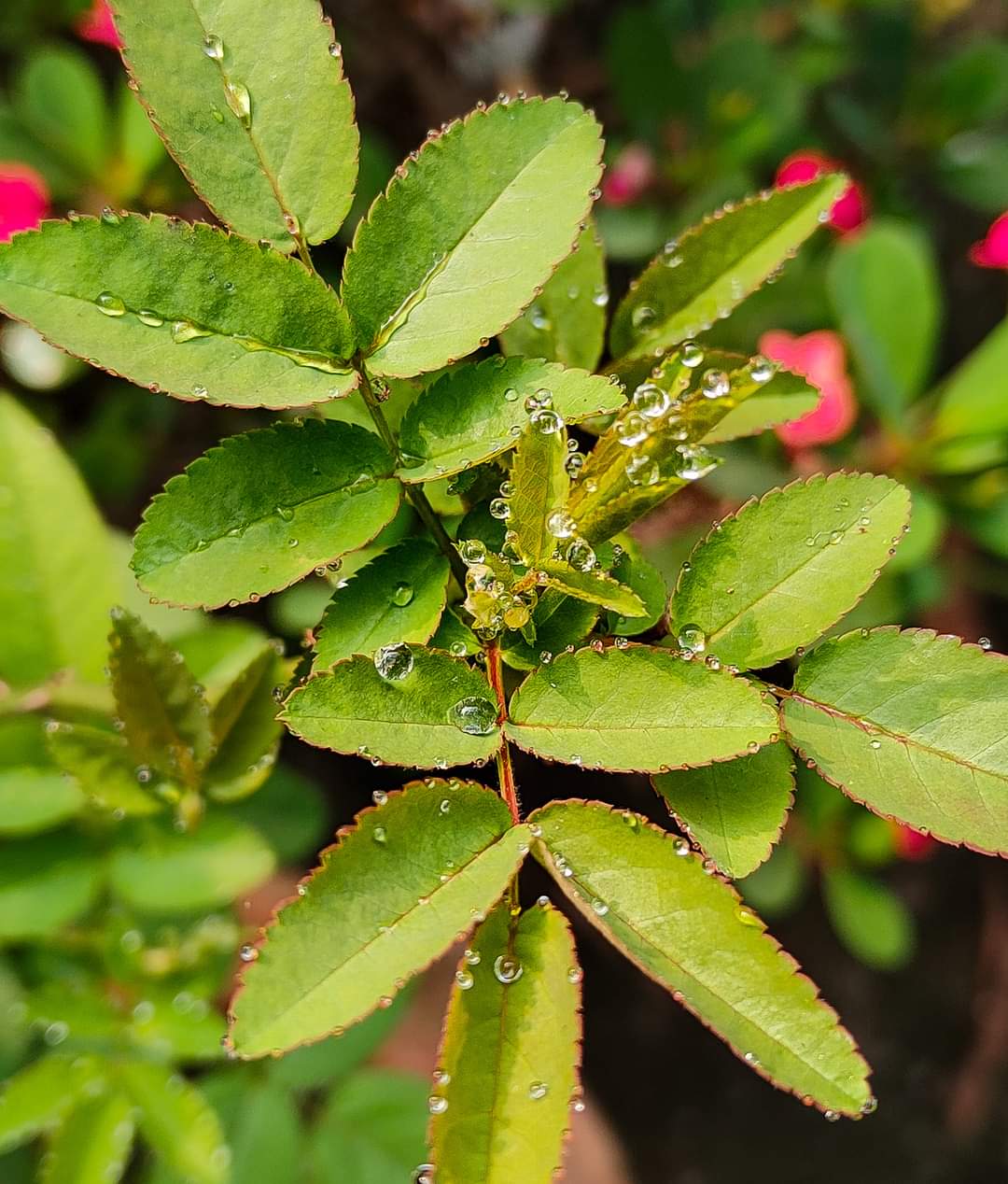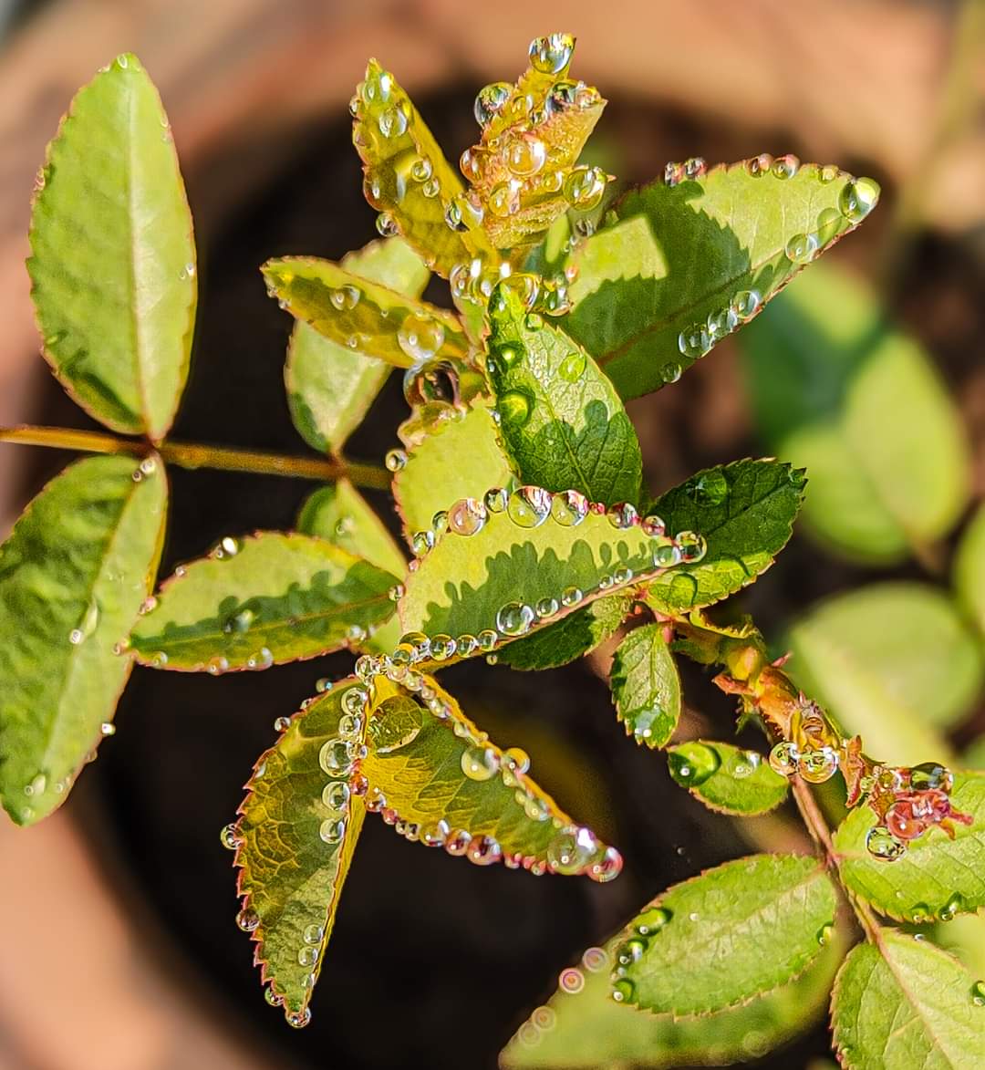 I have a rose plant at my home, and I could easily identify it upon seeing this one. Since it is currently winter, dew forms on plants in the early morning. The dew and the cold weather make the leaves look incredibly beautiful and fresh, in a way that words cannot fully describe unless you see it for yourself.