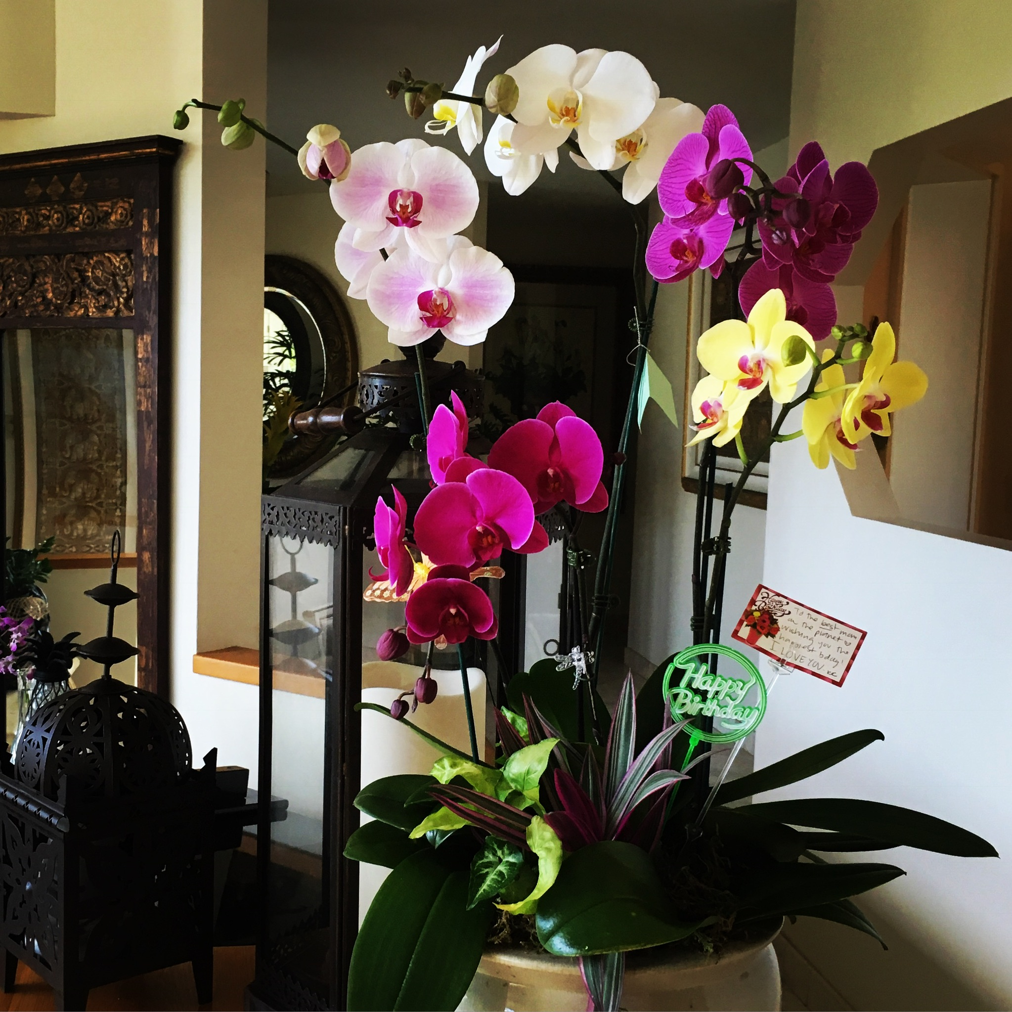 These beautiful orchids are in bloom and they will last a month.
