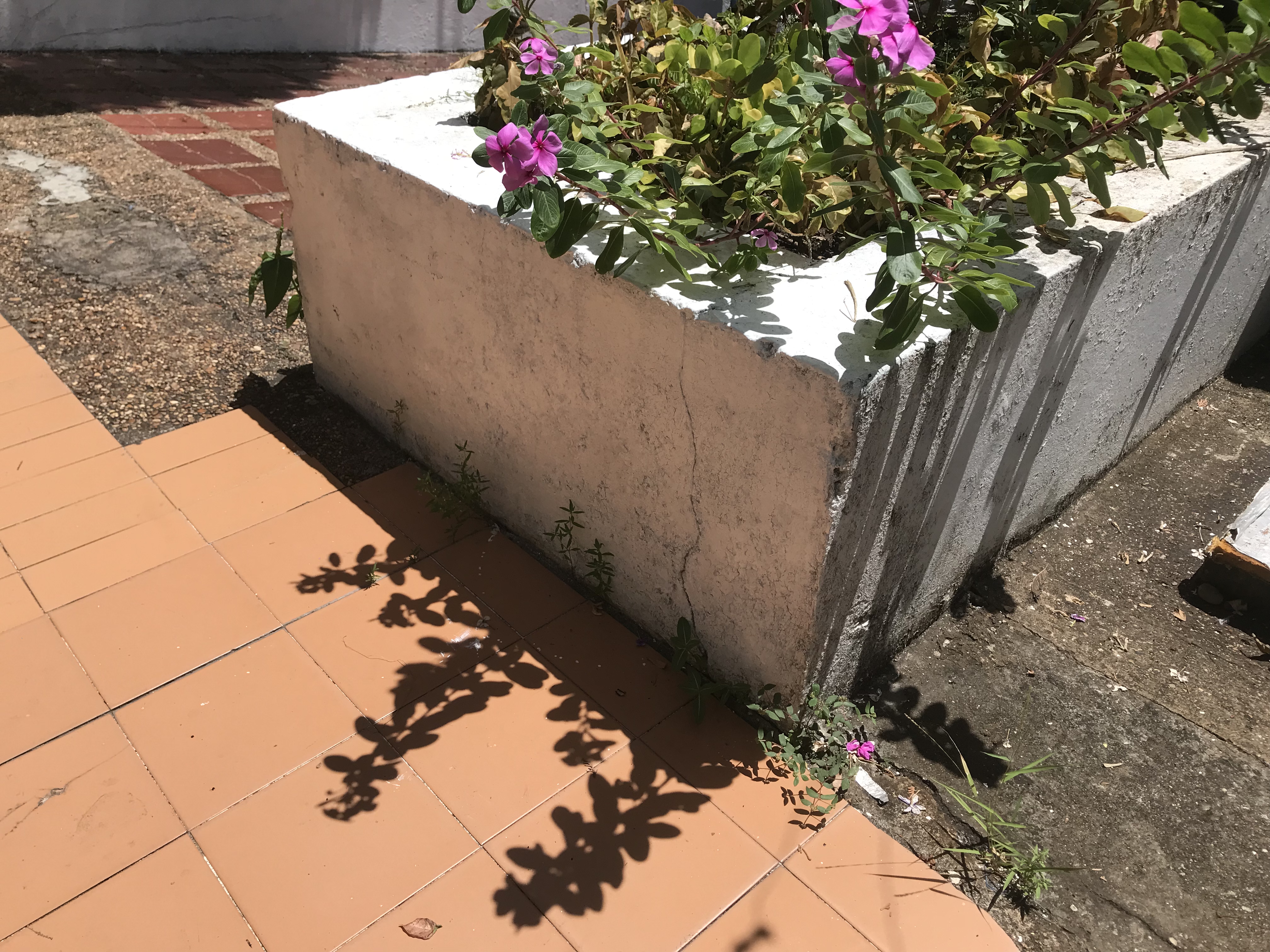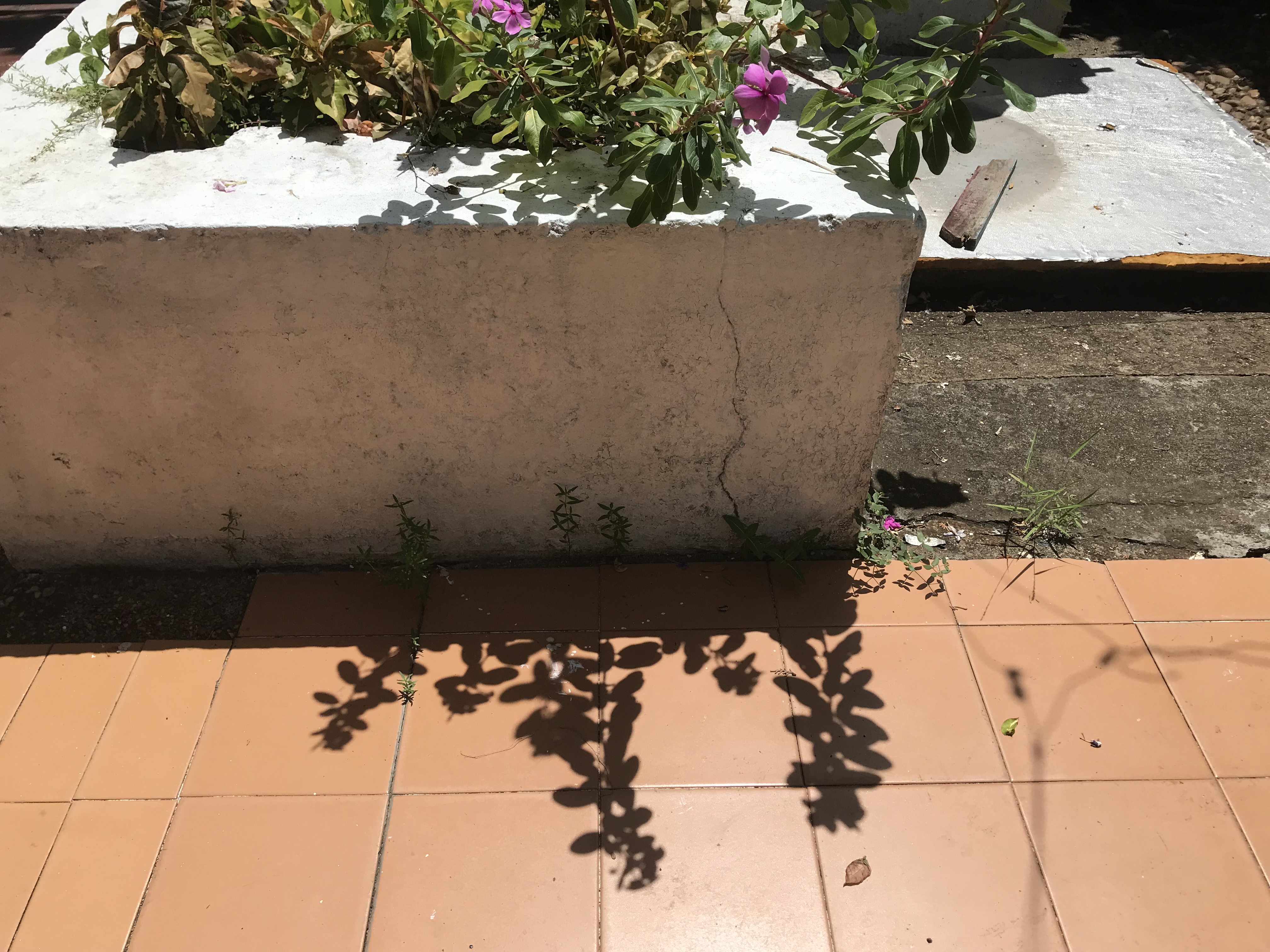 we can see how sunlight casts a sharp shadow on the ground at midday. The leaves and flowers that protrude from the white wall leave their silhouettes marked on the tiles, forming a natural pattern that stands out for its contrast, something that is rarely noticeable. The shadow seems to extend the shape of the plant, as if it were extending beyond its physical limits, as well as a way of moving forward and continuing to grow. It is a reflection of the balance between light and dark, between what is visible and what is only perceived by its outline, since everything can change in just a matter of seconds, even more so if the sun sets. This play of light transforms a simple scene into a vibrant detail, where the shadow takes center stage, a reminder that even what doesn't shine can have a significant and beautiful presence. Furthermore, the flowers on the wall are very elegant and always in bloom....