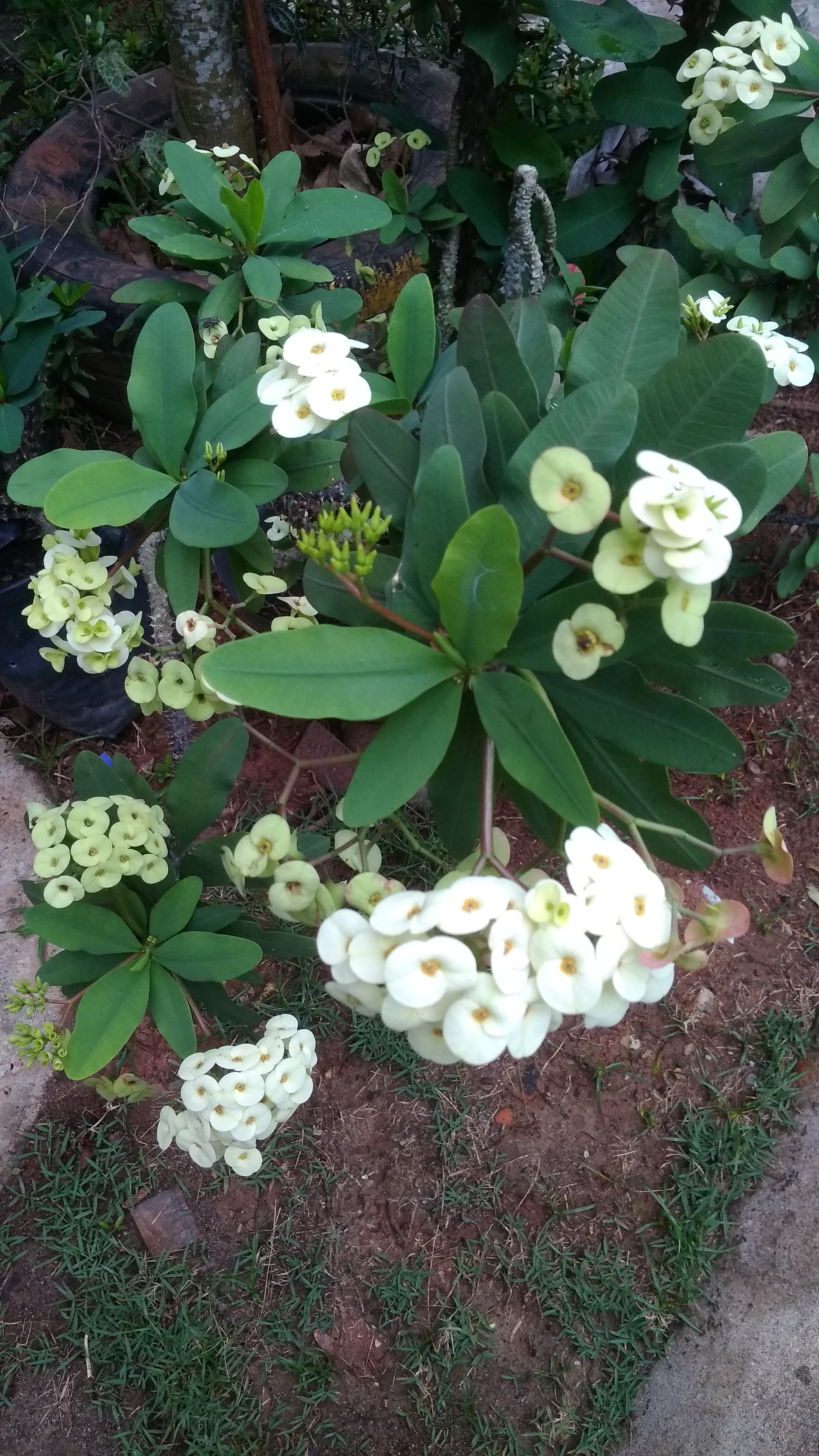Bunga ini berada di dalam pot bunga yang sederhana terletak di depan taman rumah kakakku. Bunga ini dulu sangat terkenal hampir menghiasi seluruh taman rumah. Tidak ada yang tidak memiliki bunga Euphorbia ini yang merupakan bunga penghuni gurun yang tandus.