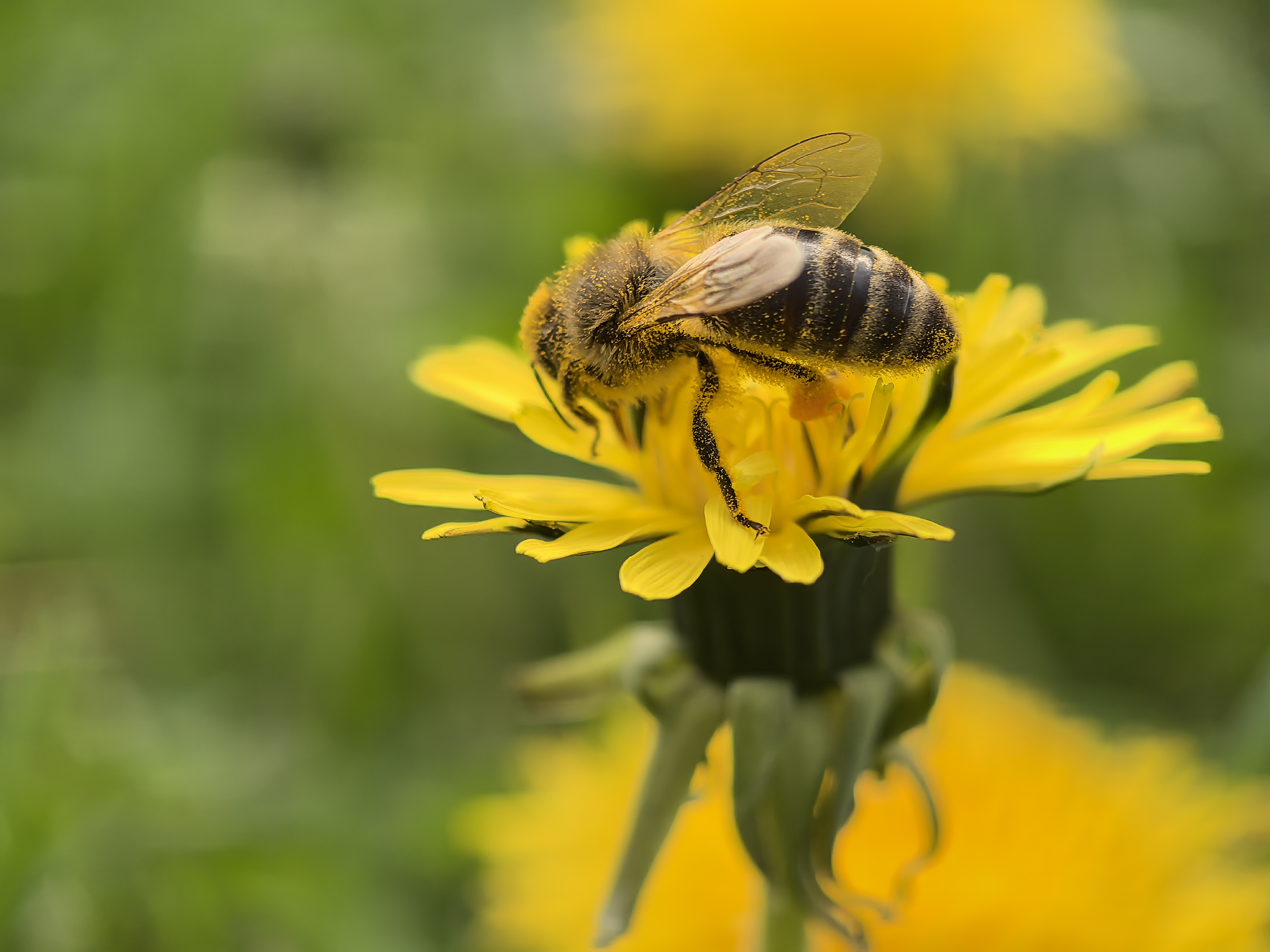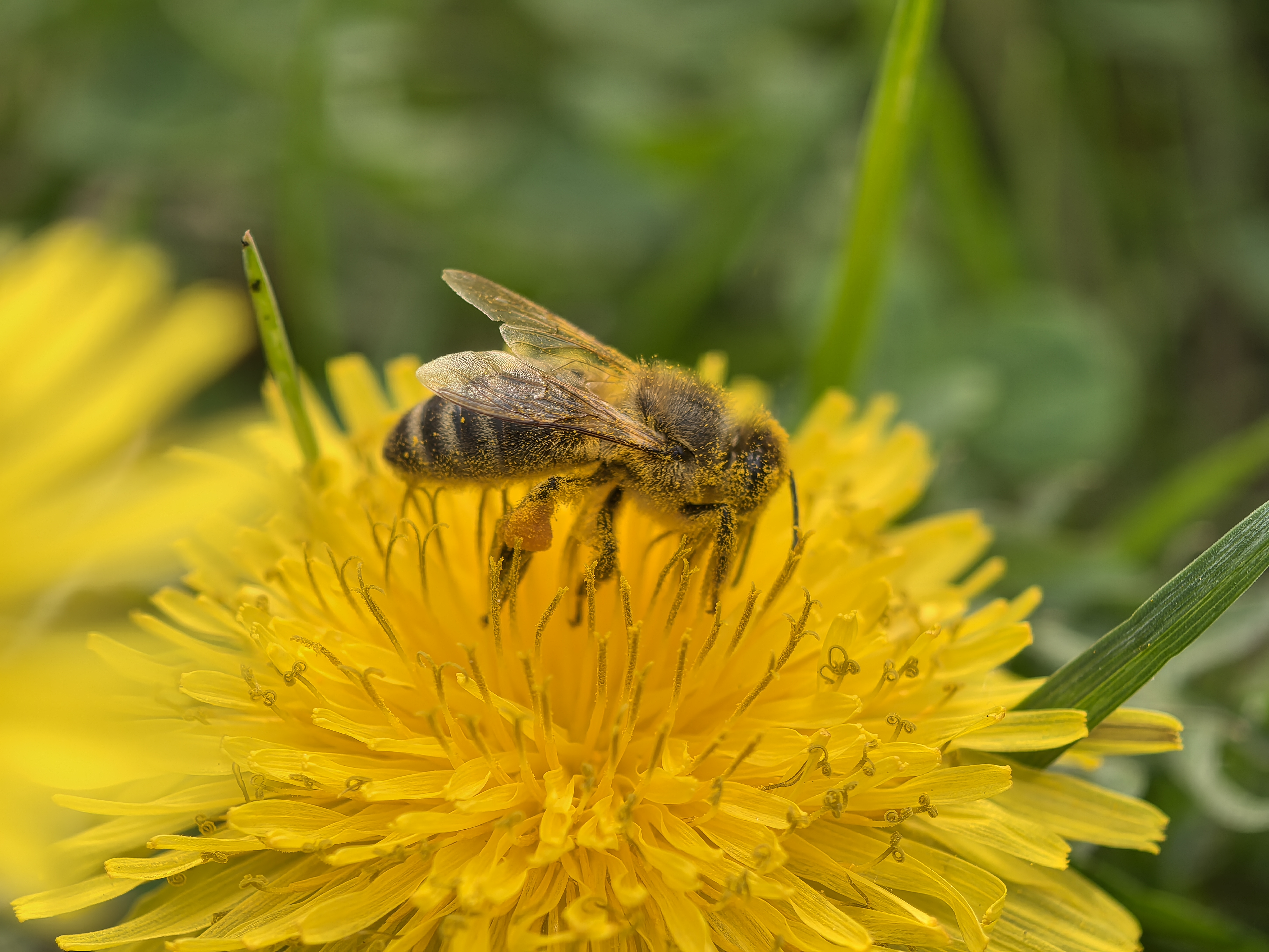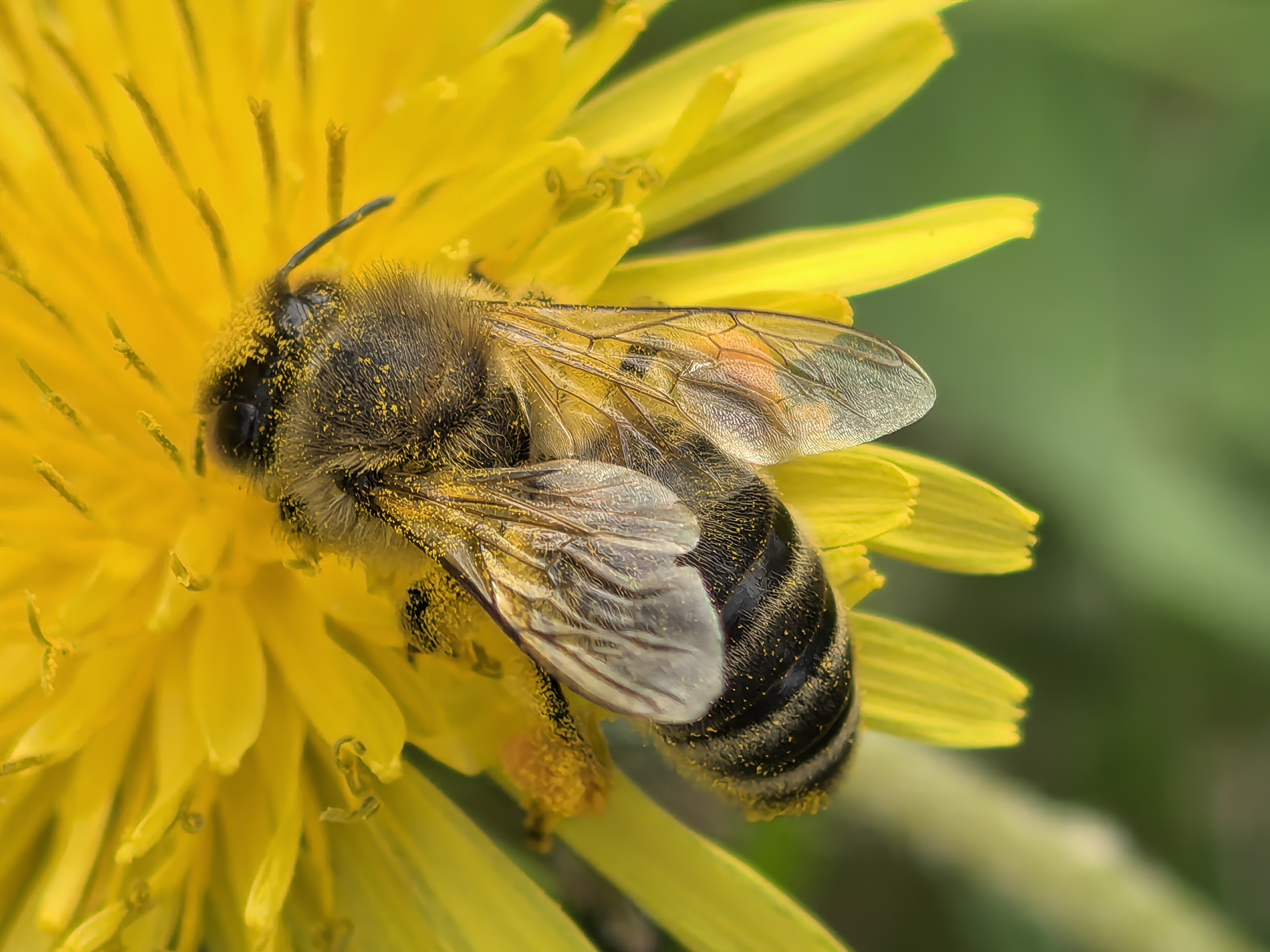 Passing by a meadow overgrown with milkweed, I saw some bees collecting nectar. For several minutes I watched them and took pictures of one of them. For a moment it even sat on my hand, but did not sting me.