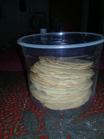I immediately write the ingredients: 2 cups of nixtamized cornmeal, 1 ½ cup of warm water and ½ teaspoon of salt.