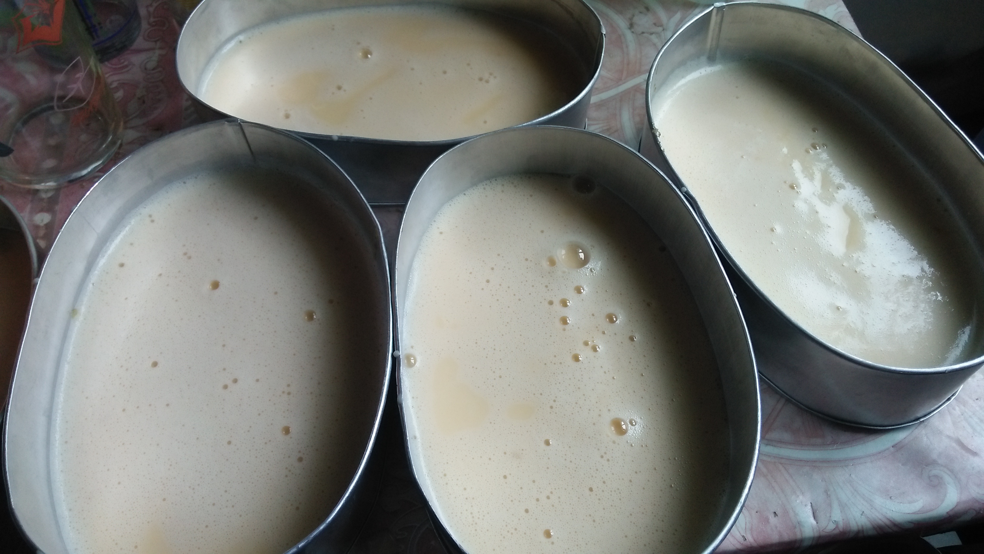 Pour you egg mixture to your prepared llaneras with caramelized sugar.