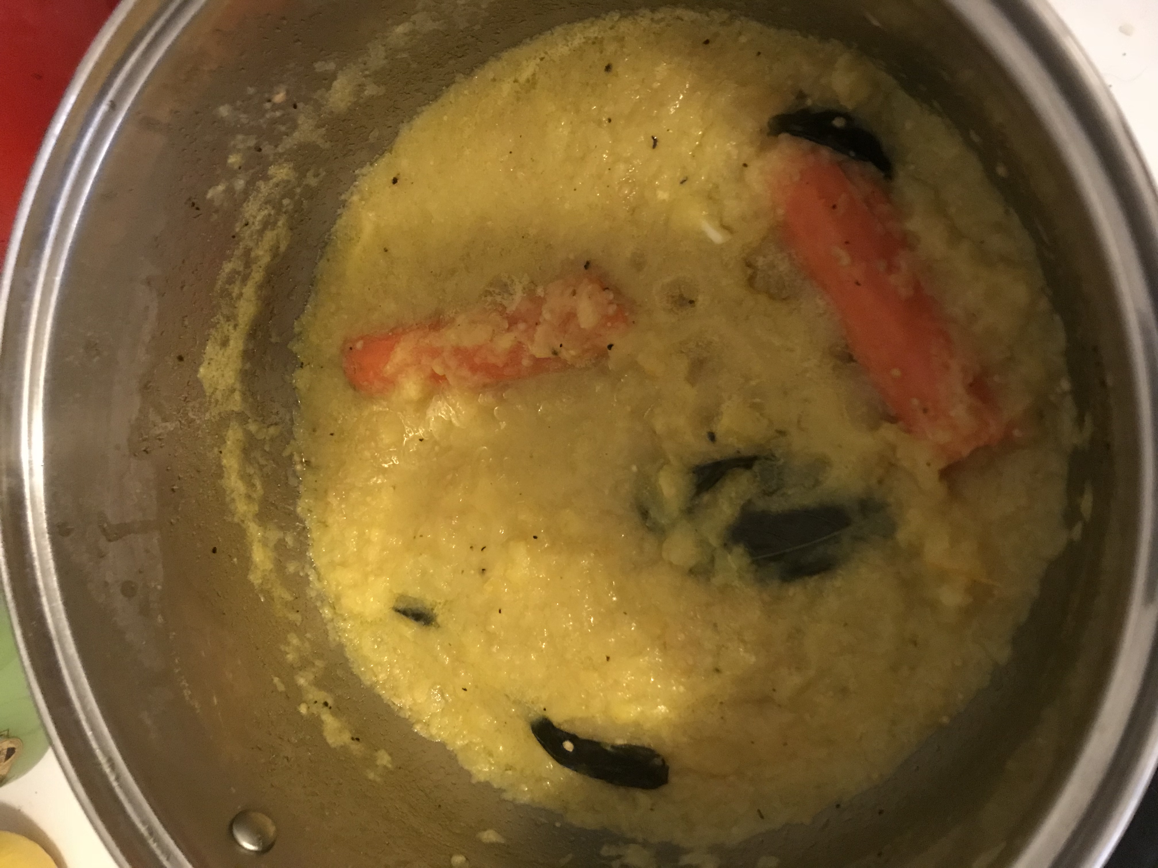 We let them boil for a while and then peeled the skins off. Some people don’t peel them but we haven’t made a from tomato scratch sauce before, we usually use already peeled tomatoes from a box (not a can thankfully!) We then added some fresh basil, freshly cracked pepper and freshly ground pink salt. Instead of adding sugar like a lot of people do we go the more natural route and add a carrot! Carrots add a great sweetness to it and keep the sauce a lot healthier than by adding sugar. Plus a bonus I enjoy eating the carrot when it’s all done!