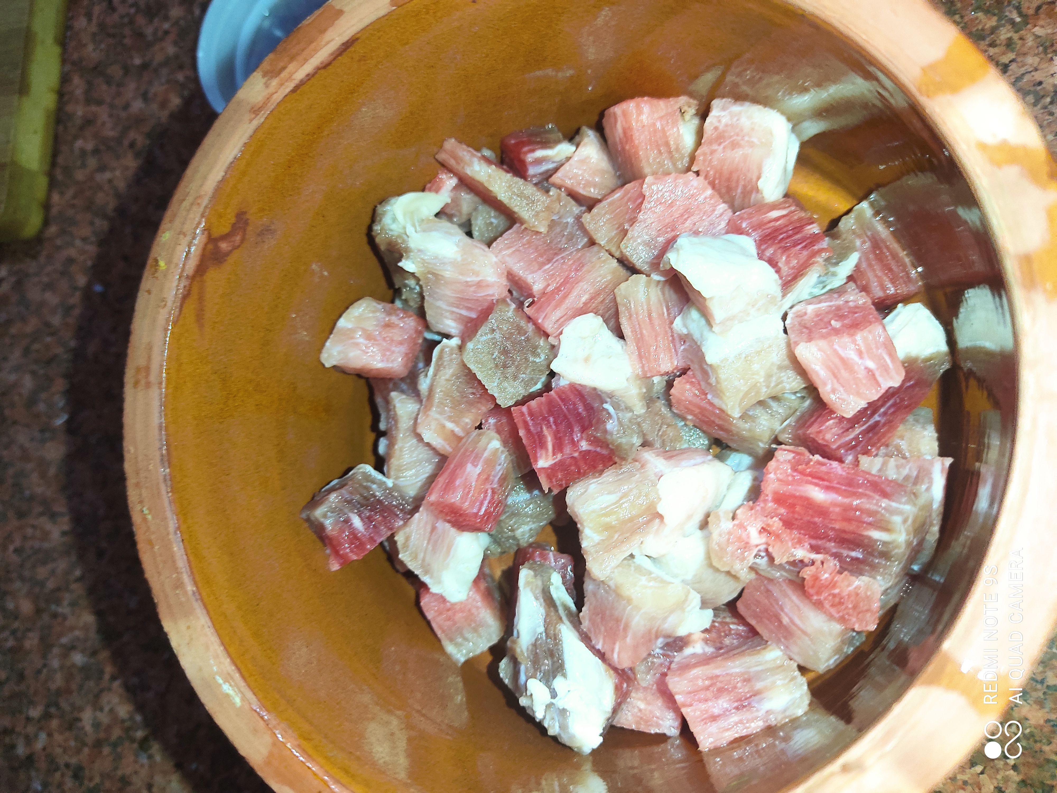 نقوم بتنقيعها في الماء لليلة كاملة حتى تنقش حياتها وتكبر وتتضاعف معنا ومن ثم نقوم بوضعها في حلة ونضع عليها الماء لنقوم بسلقها حتى تنضج ونضع عليها القليل من الكمون والملح وبعد ما تنضج معنا بنكون حضرنا الطاجن وبنغسله جيدا ومن ثم