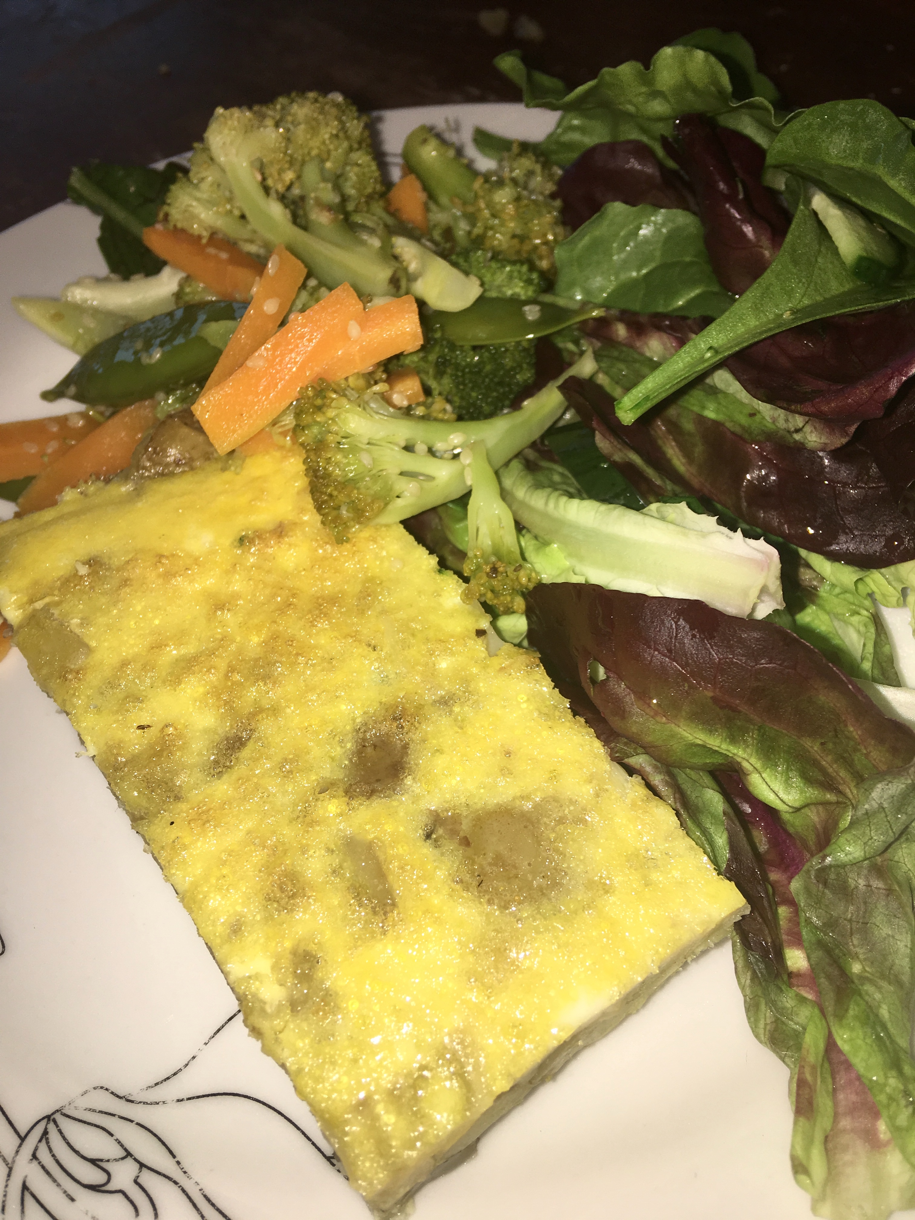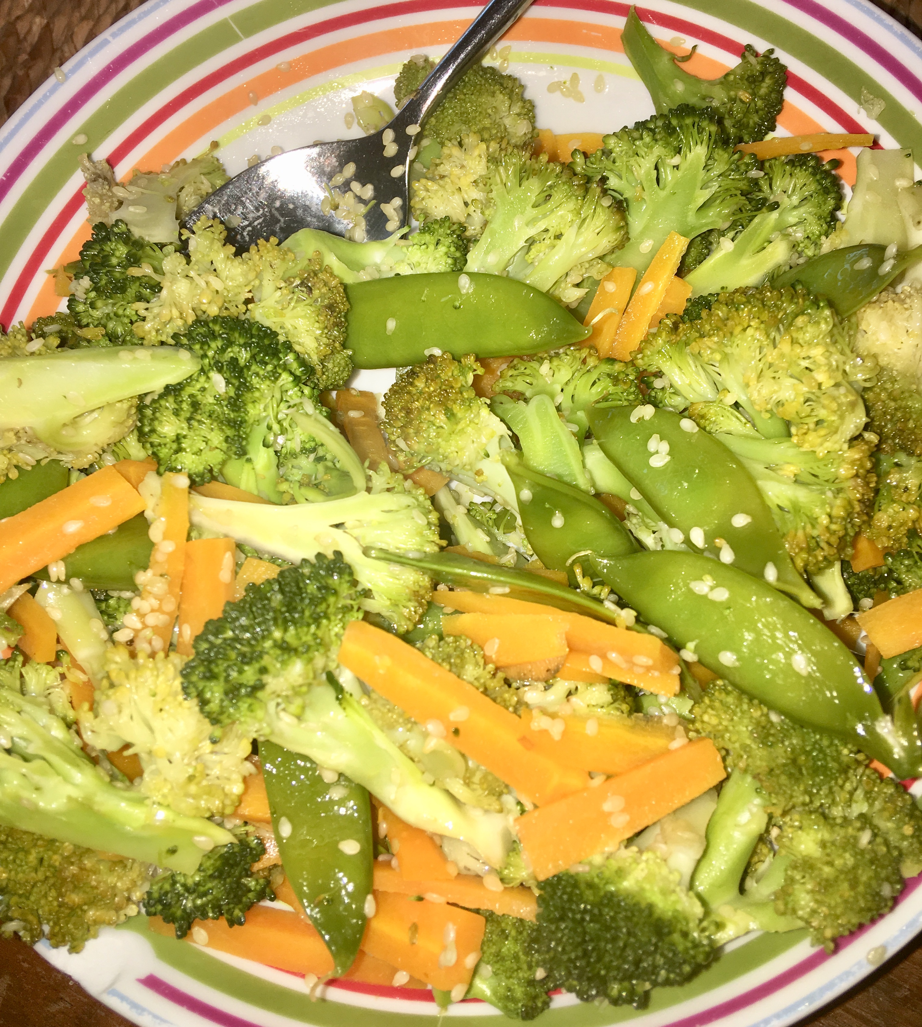 Fried veg — get a frying pan (non stick) and put the olive oil in it along with your broccoli and carrots then fry the veg until they are cooked. when they are completely cooked add in you sesame seeds and salt for flavour and it is ready to serve ! Xxx