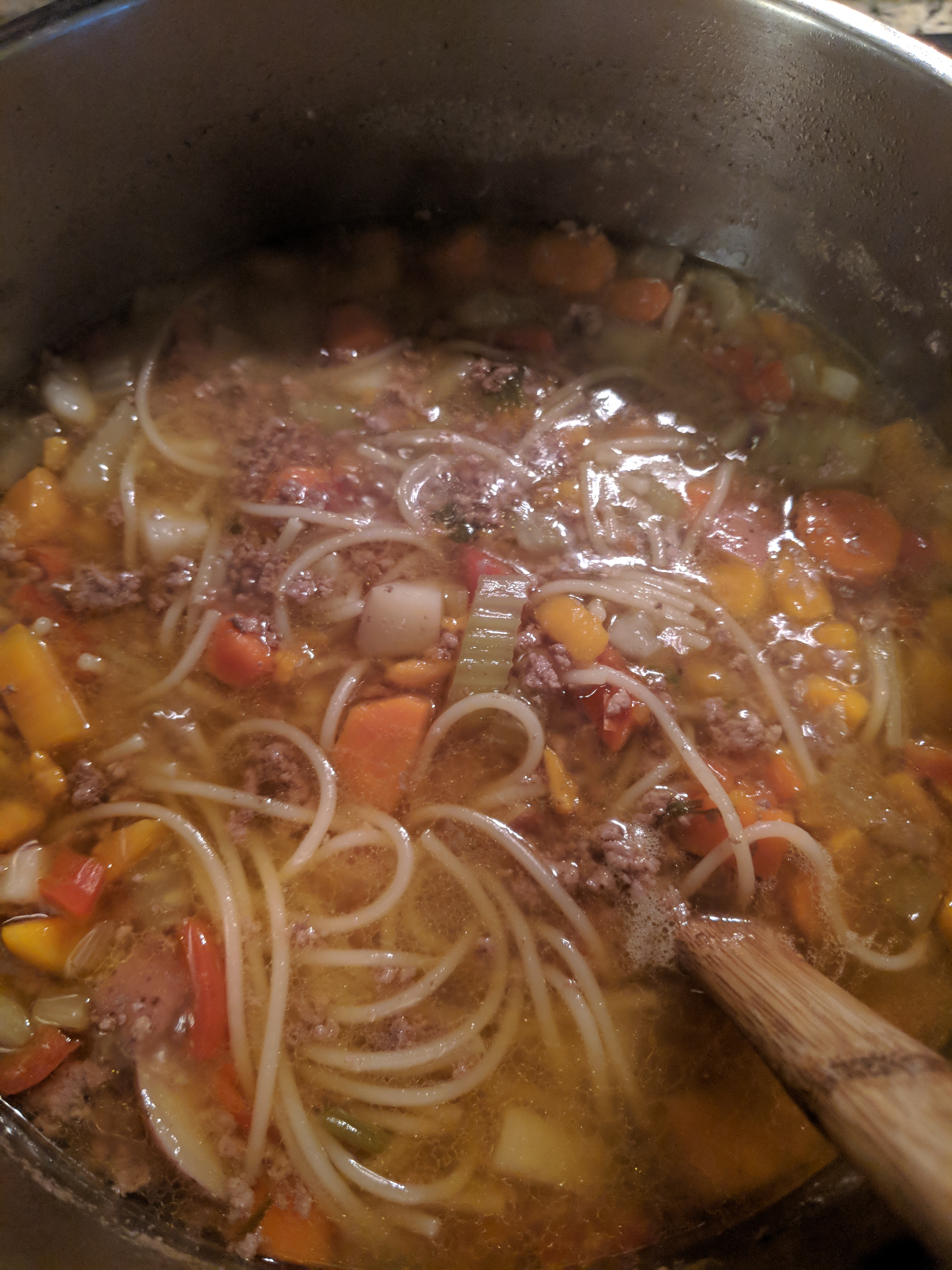- Somewhat cut up spaghetti noodles (only added at the very end so it isn't too soft)