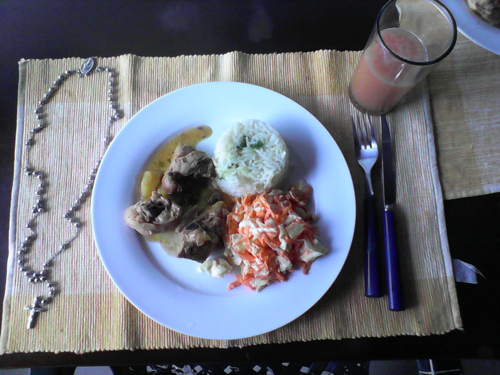 Mi amigo de la infancia está de cumpleaños y nos invitó a su casa para compartir un almuerzo, preparó una rica comida de pollo guisado con ensalada y arroz, la foto tal vez no tenga una buena resolución porque la tomé con mi teléfono y es un huawei Y230, aún así quiero compartirla con todos ustedes. Saludos.