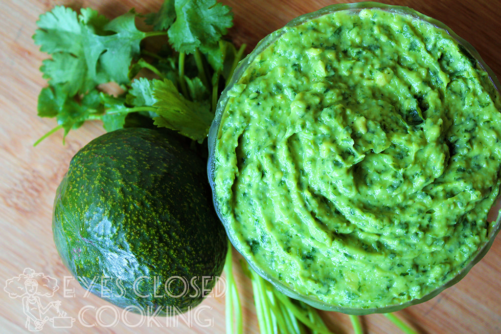 I am blessed to live in the avocado-growing state of California! Although avocados are technically not in season yet, the price is already starting to drop in stores. Come Springtime, avocados will be plentiful and cheap everywhere you go in California. It’s one of my favorite times of year because I love putting avocado in everything from my Bagel Omelet Recipe to my Avocado Chicken Salad. And let’s not forget that delicious Spicy Guacamole. I’m excited to add this Avocado Cilantro Sauce to my growing list of avocado-filled recipes!
