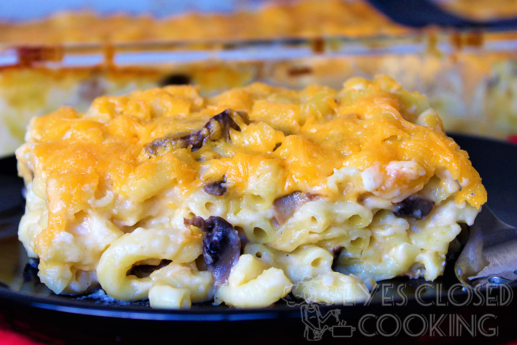 I find that elbow shaped pasta is the best in this recipe but you can also use penne or rigatoni if you prefer. After the initial preparation of the pasta and sauce, you’ll throw everything into a large casserole dish and bake for about 25 minutes. I hope this becomes your new go-to mac and cheese recipe! Let me know how you like it in the comments below! 😋 🧀 🍄