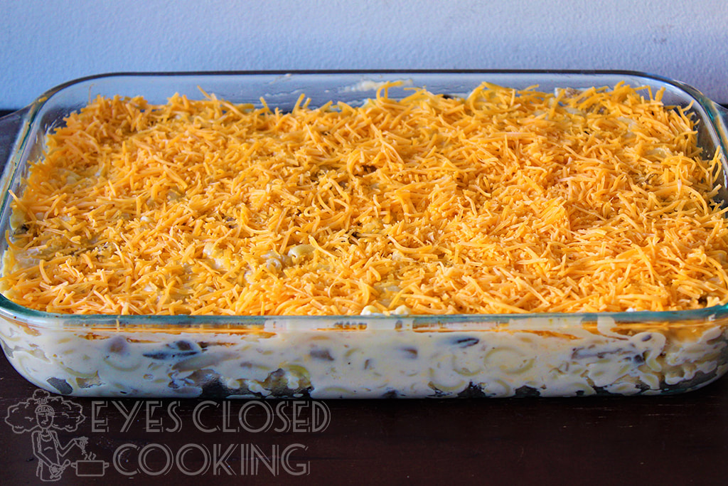 This recipe is a baked casserole style mac and cheese, which I believe is the best kind! You still get the creamy cheesiness of mac and cheese, with the added comfort and slight crispiness of a baked casserole. Although this mac and cheese has fairly basic ingredients, there is one outlier in the recipe: the mushrooms! You can use fresh or canned mushrooms with the same cook time and results.