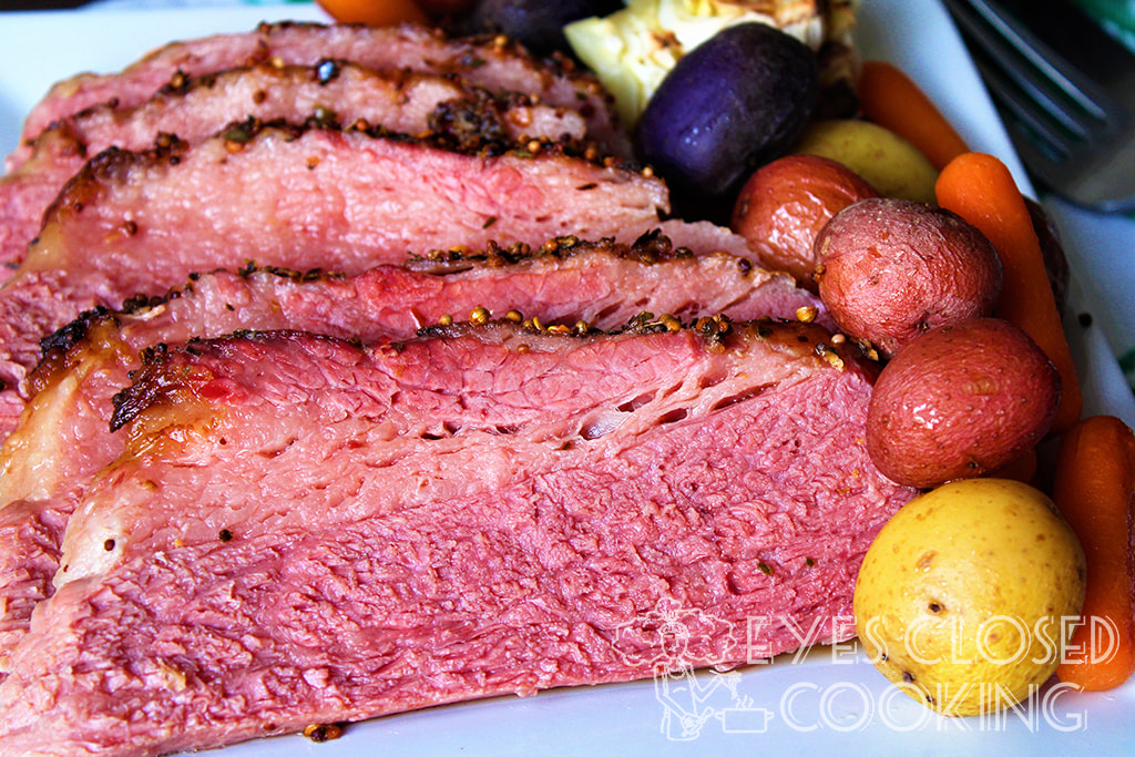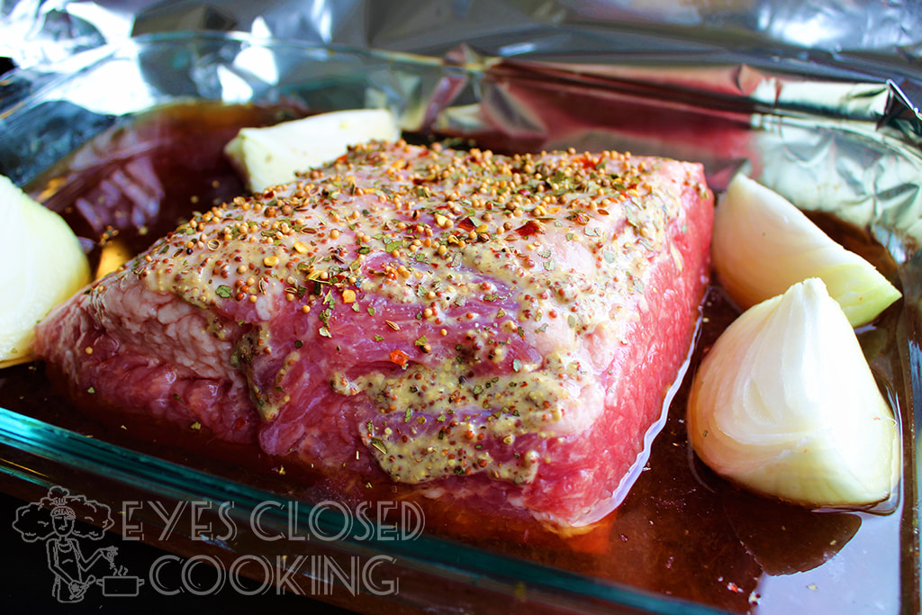 For me, baking the corned beef in the oven always reminds me of baking a ham. The steps are very similar: