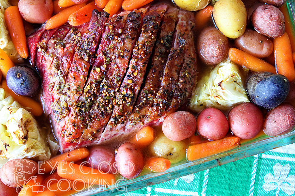 I have spent the last few years learning how to make the perfect Corned Beef recipe in order to impress the Irish family that I married into! And I think I’ve finally mastered the art of corned beef. I originally used to cook the corned beef and vegetables in the slow cooker but once I tried the oven-baked method, I found it to be preferable. The corned beef comes out just as tender and flavorful with a much shorter cook time.