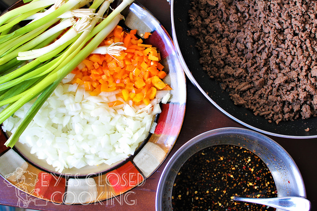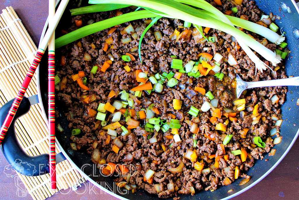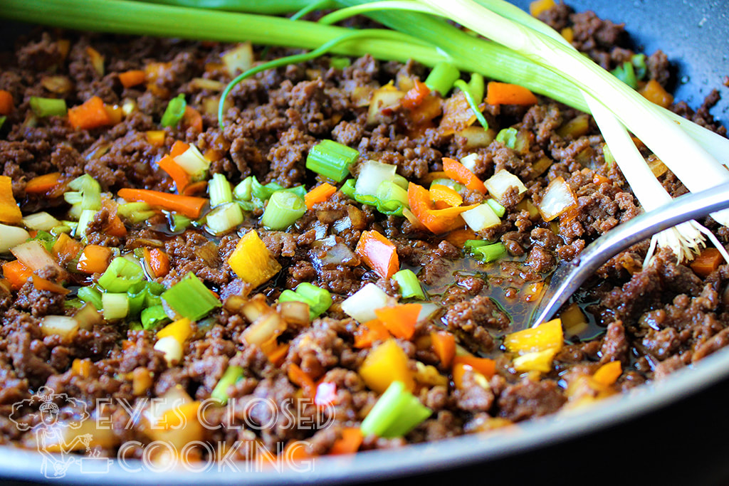 Ground beef is the easiest meat to work with when it comes to this kind of recipe. But if you’ve got other types of protein lying around, you can substitute those in and keep the rest of the ingredients the same. Some alternate ideas would be chopped chicken, thin steak, tofu or even mixed vegetables. The marinade in this recipe will make anything taste incredible.