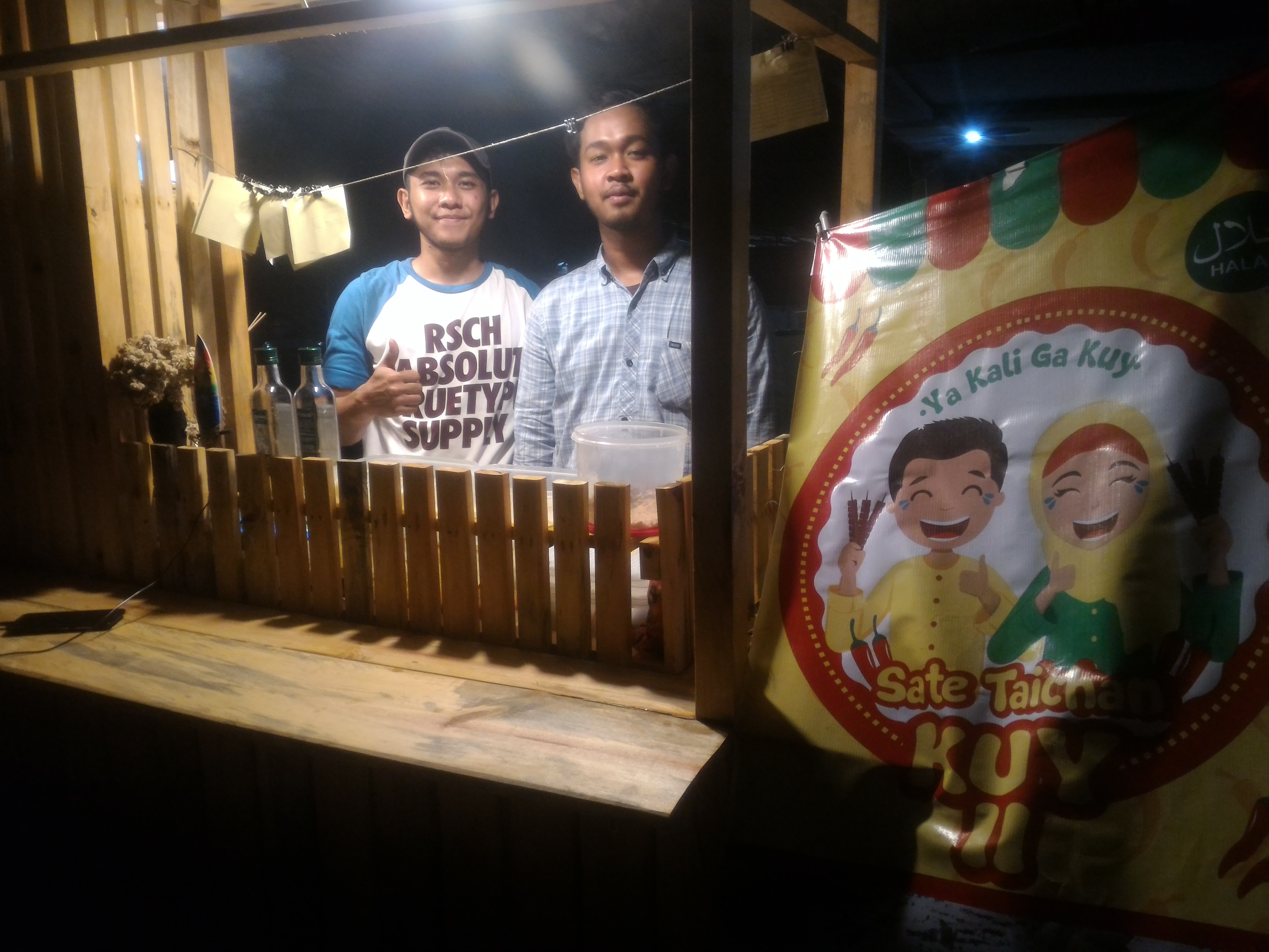 Di saat orang lain ria menikmati malamnya, Iqbal Fajar (20) asik mengipas-ngipas sate daging ayam. Tangannya juga cekatan meramu bumbu sate. Kemudian diolesi menggunakan kuas kecil. Dikipas lagi hingga satenya matang. Sate pun siap disajikan kepada pelanggan yang sudah menunggu. Satu per satu pesanan di antar. Sementara itu masih ada sejumlah kertas pesanan. Digantung menggunakan penjebit sedemikian rupa di sehingga mudah dilihat.