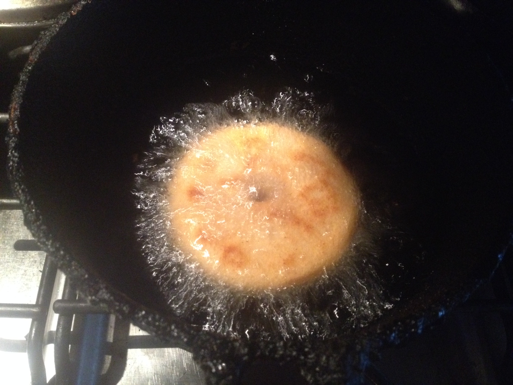 Van hacer unas ricas y tostaditas arepas fritas, no olviden hacerle el hoyito, cuyo hoyo permite una mejor cocción. Igual lo pueden implementar con la carne de hamburguesa.