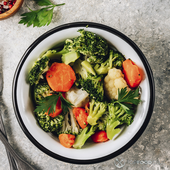 Steamed vegetables with a spicy sauce