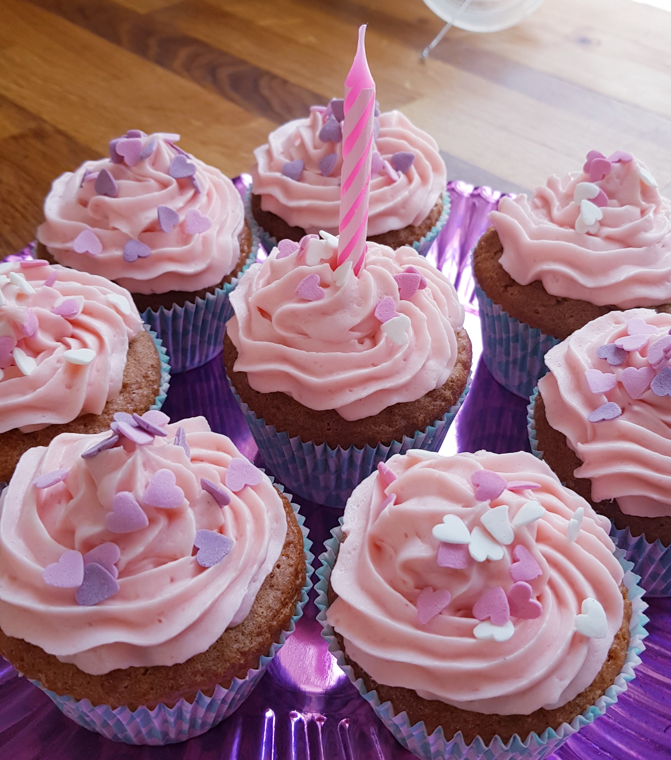 put the cupcake molds in the tray and fill them for three quarters with batter. bake the cupcakes in the preheated oven in about 25 minutes. Do the old toothpick!