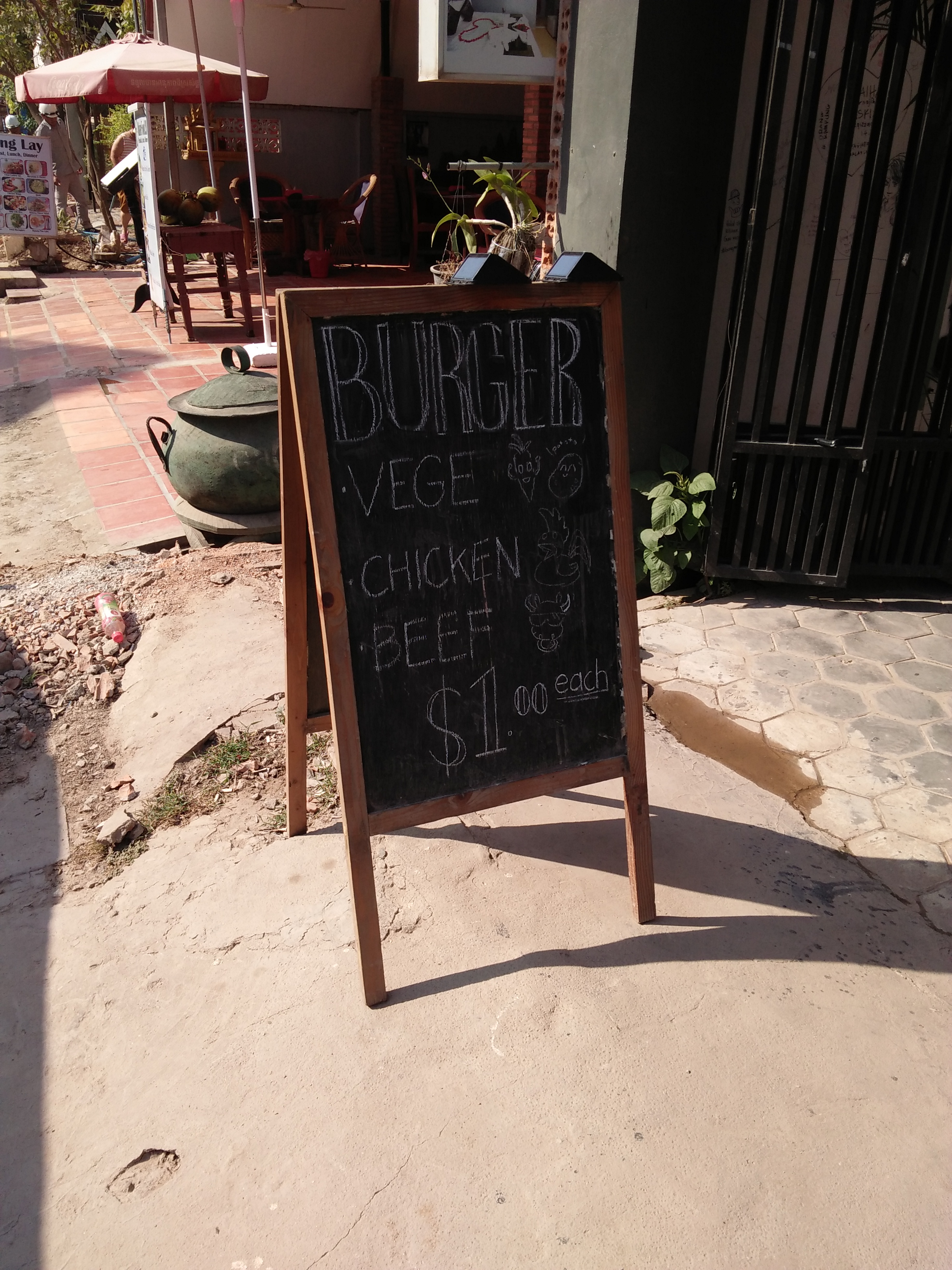 Although I normally don't eat burgers to often, I heard from of a friend of mine that a new Malaysian restaurant opened in town (Siem Reap, Cambodia) that had a promo going on: $1 for any chicken, beef or veggie burger.