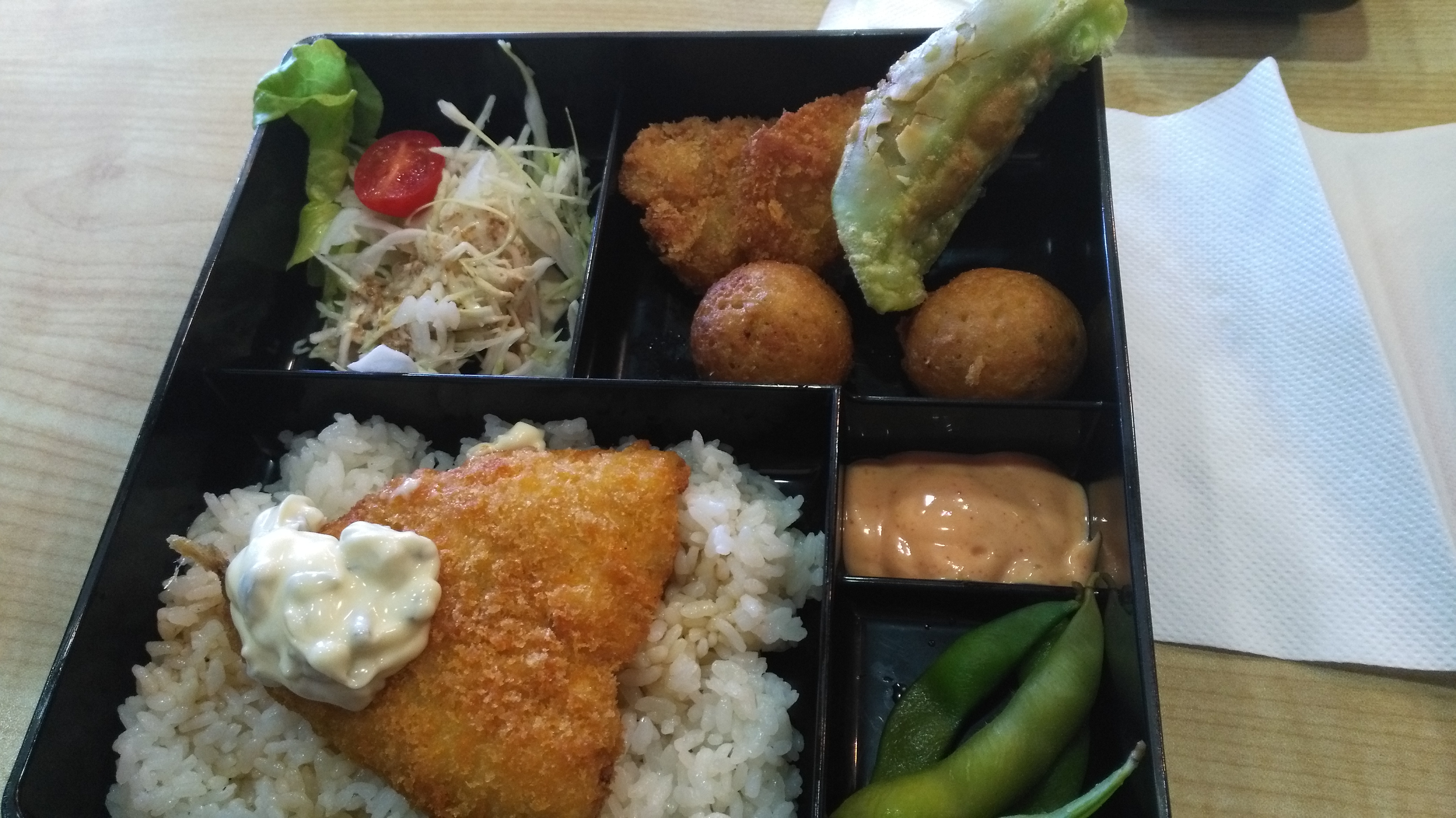 This Bento set consists of Katsu Fish, with Octopus, prawns and Vegetable Gyoza. The set comes with rice, salad and steamed soybeans. We get to choose a sauce as well.