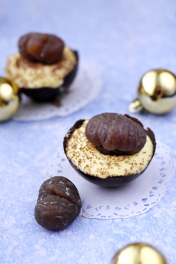 Add the remaining egg whites in the mascarpone, sugar and egg yolk, then glazed chestnuts.