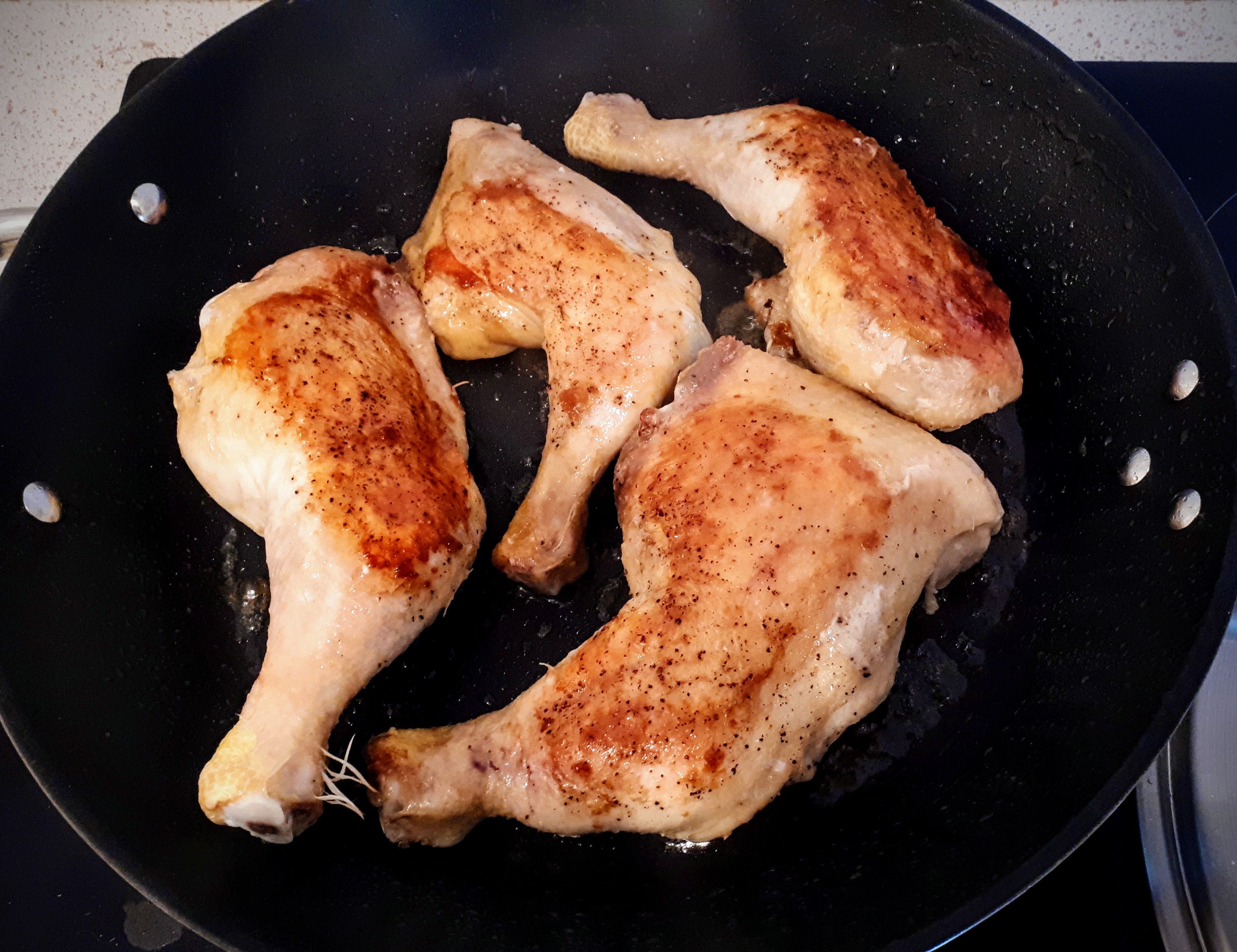 I started by browning the chicken on both sides and basically cooking it all the way through. Once that was done I set it aside for later.