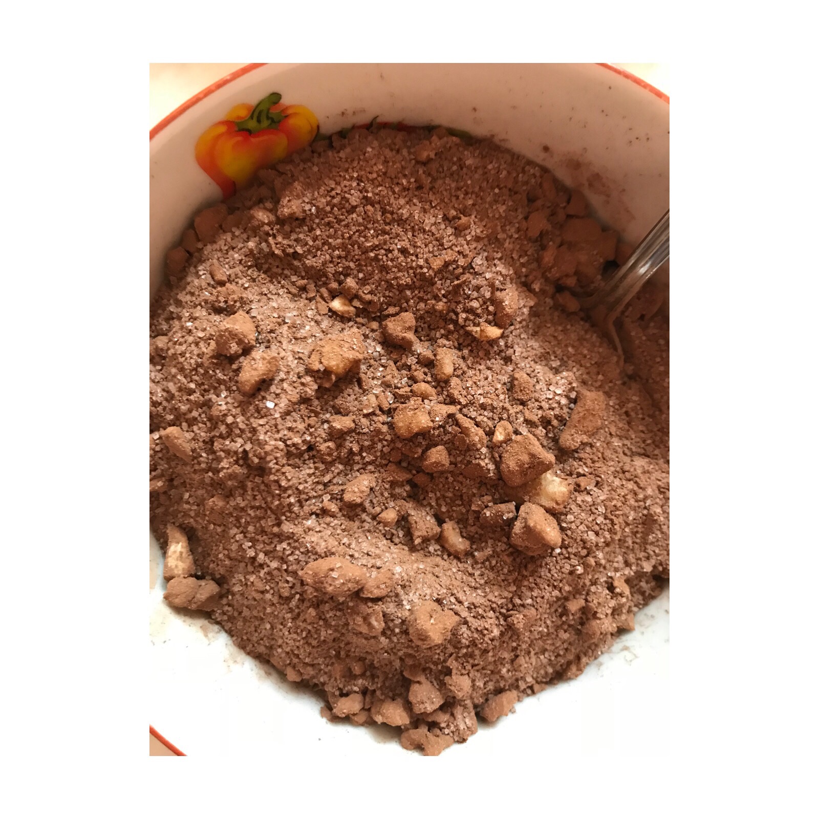Pour the cocoa powder and the sugar and stir in order to mix all of the ingredients.