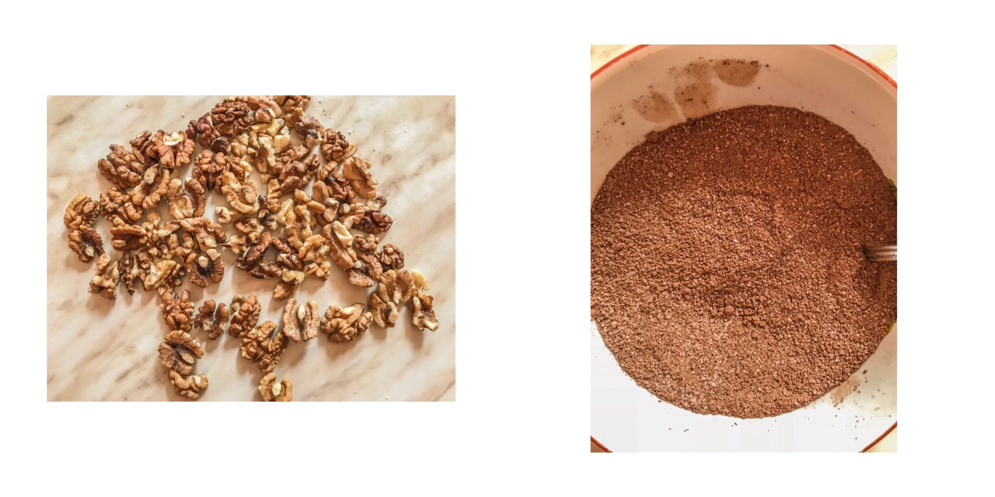 Now comes the time for the holly stuffing. You can either buy crushed walnuts or crush them at home by yourself as I did.