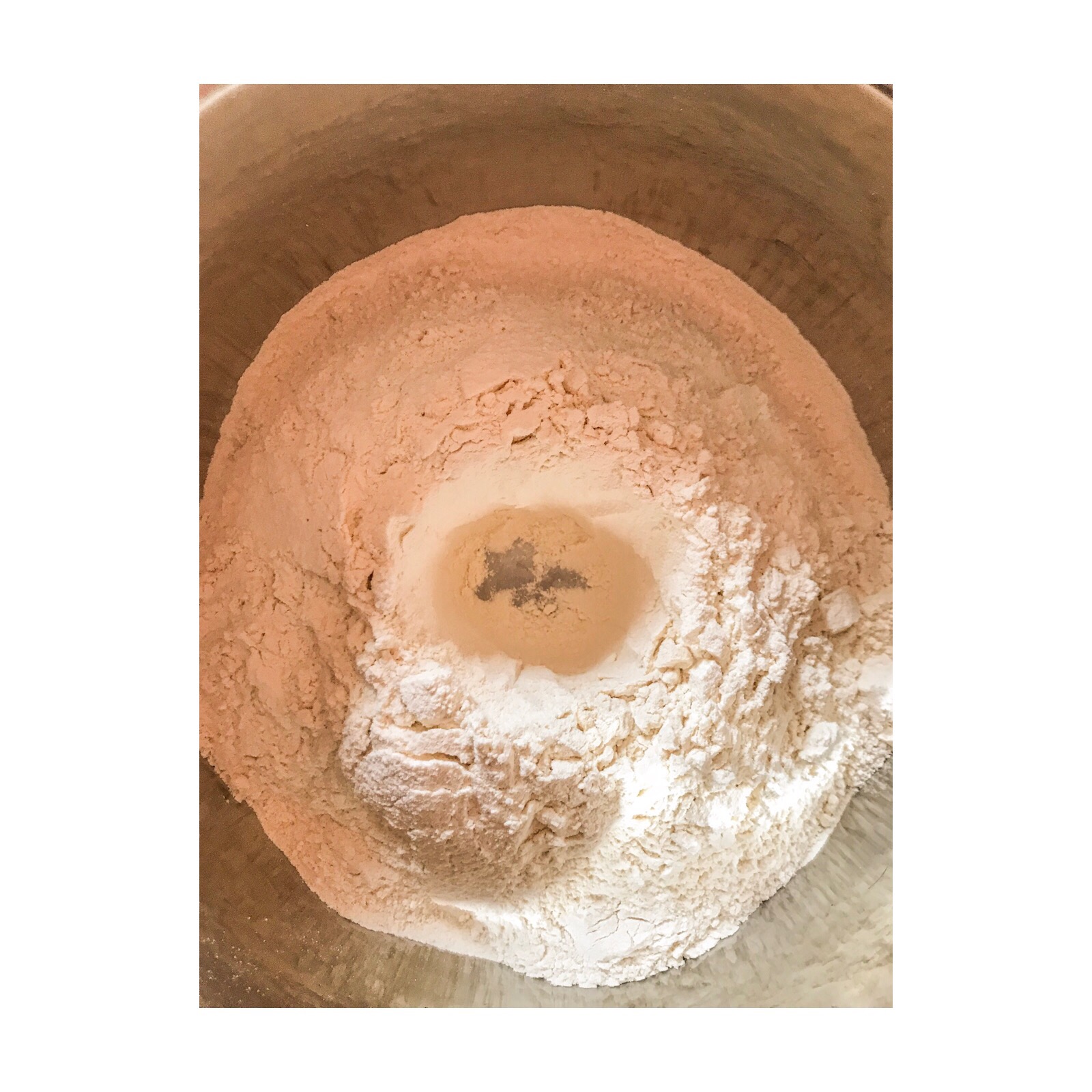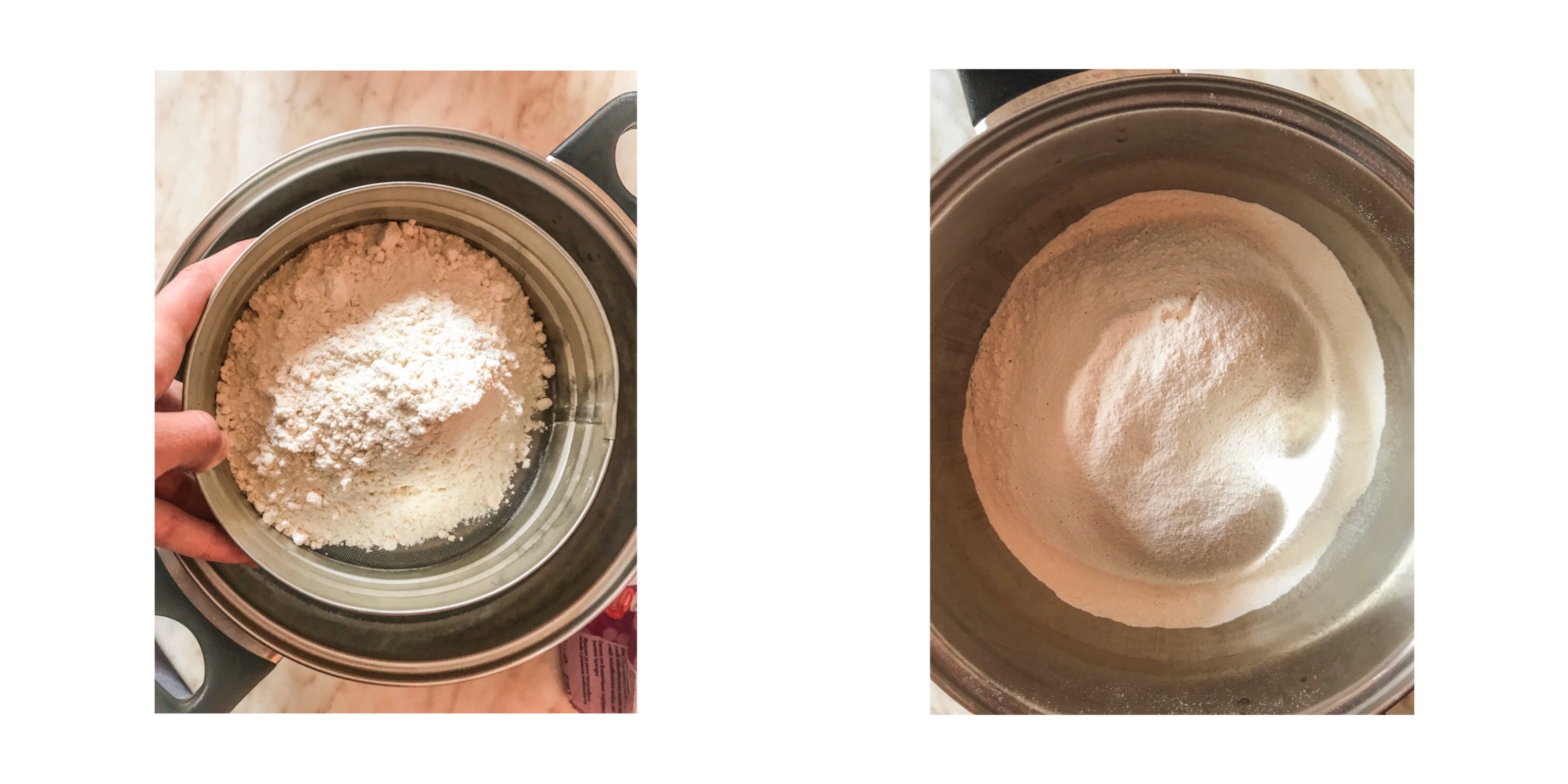 You have to first start with sifting the flour. This process incorporates air into flour and will make the “kozunak” light, airy and fluffy.